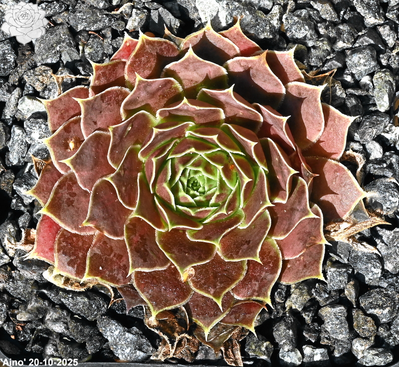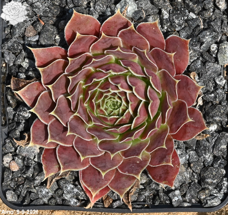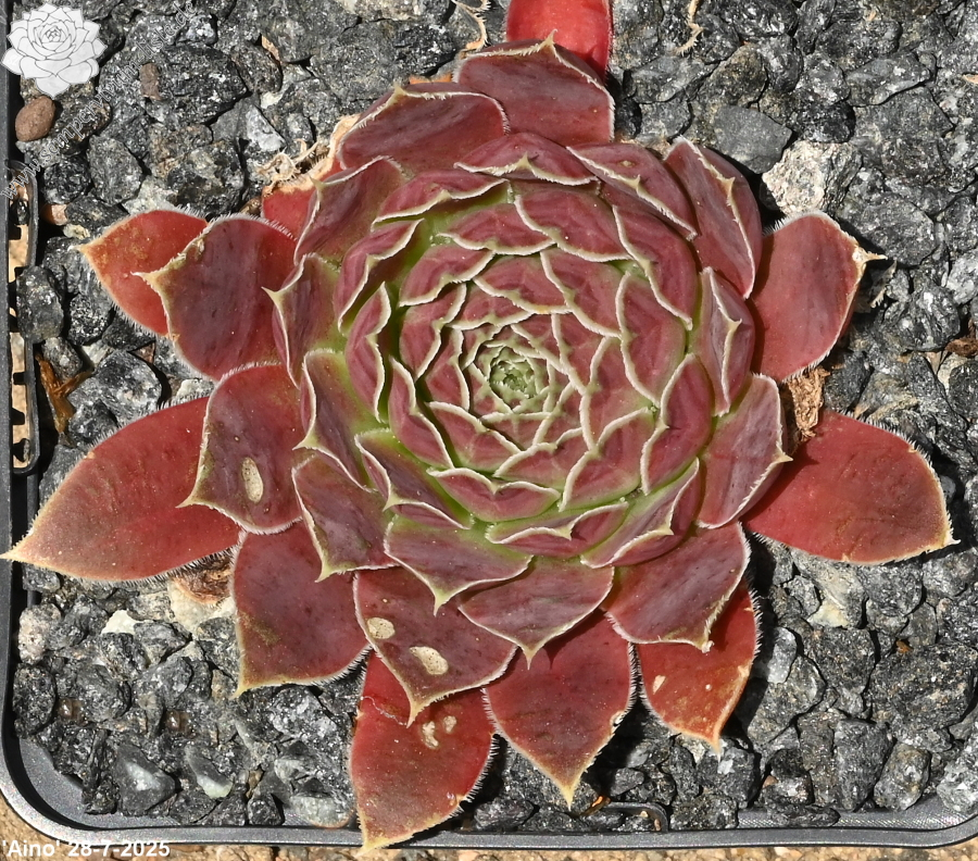 Rosetten bis 6 cm, Blätter oval, leicht bewimpert, Basis grünlich, Rest rotorange, Blattränder gelblich- grün