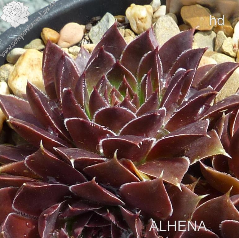 Rosetten bis 6 cm, Blätter lanzettlich, lang bespitzt, Mischfarben dunkles Braunrot, Ränder bewimpert