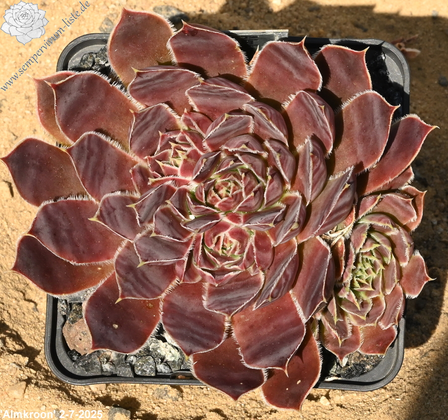 Dieser prächtige Kultivar formt recht große Rosetten in zwielichtiger Färbung. Die Blattränder sind lang und weiß bewimpert.