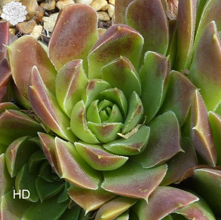 Rosetten bis 8 cm, Basis hellgrün, Blattspitzen rötliches Braun