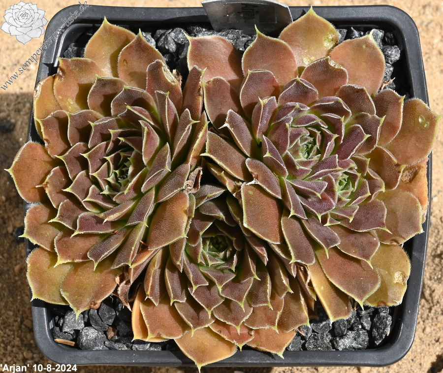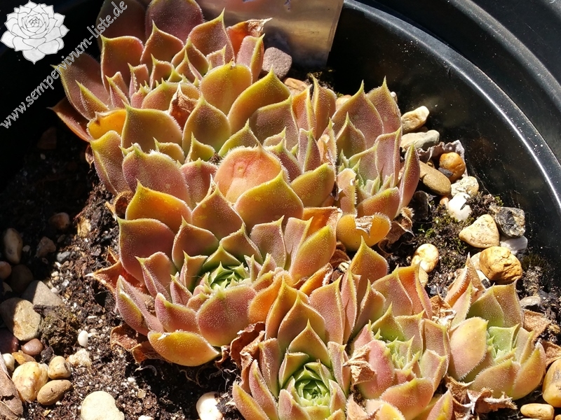 Rosetten bis 5 cm, blassrosa in gelblich übergehend / Blattränder hell