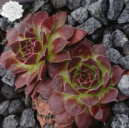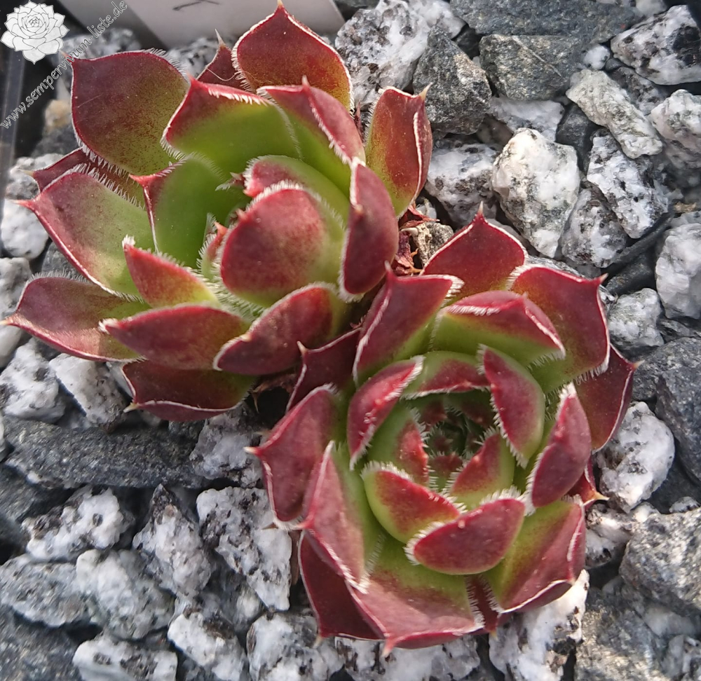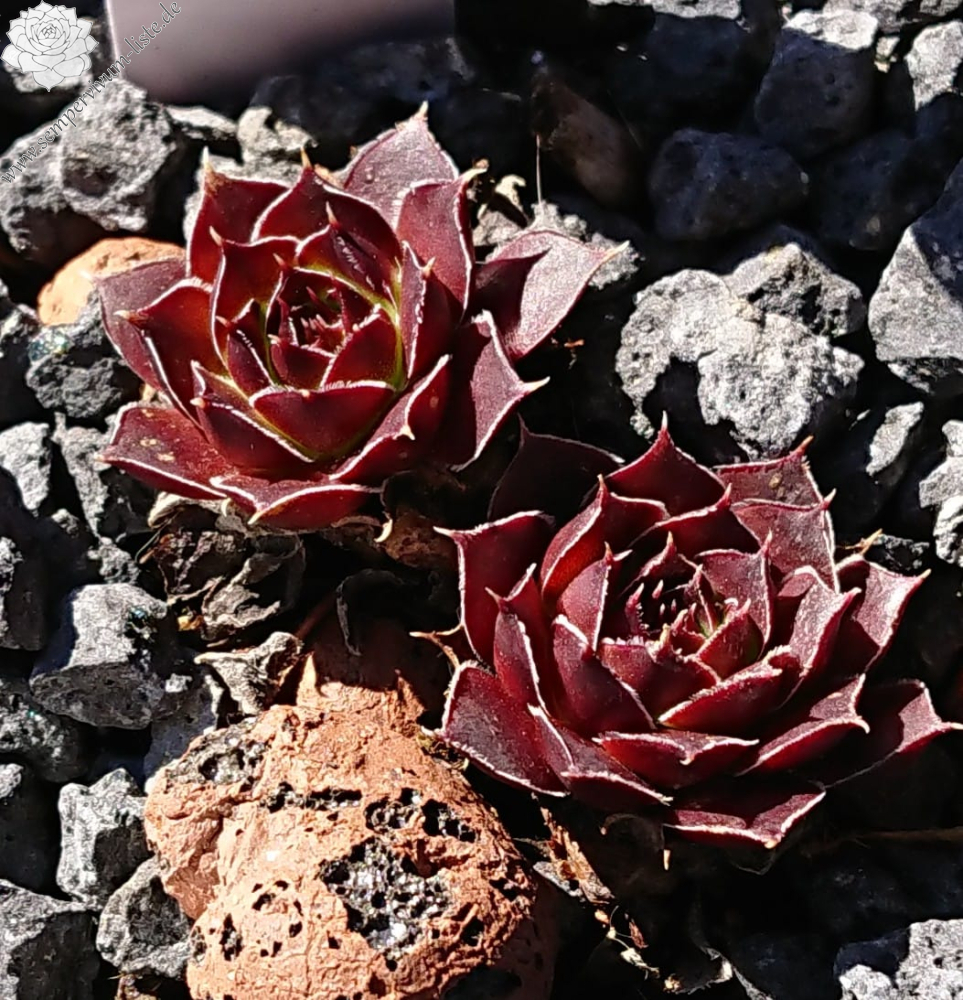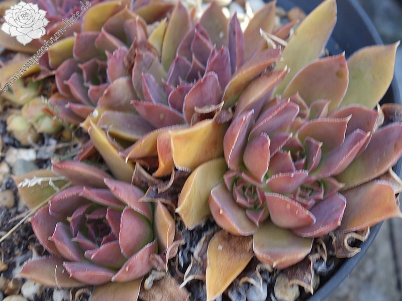 kleine Rosetten, Blätter lanzettlich, lang bespitzt, dunkles Grün, Spitzen braun - lila