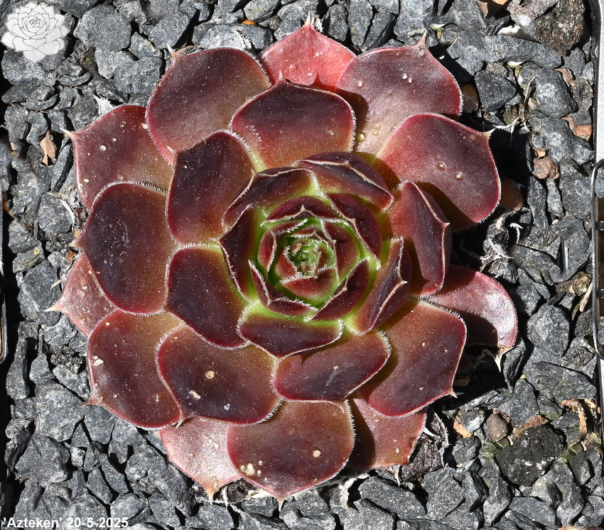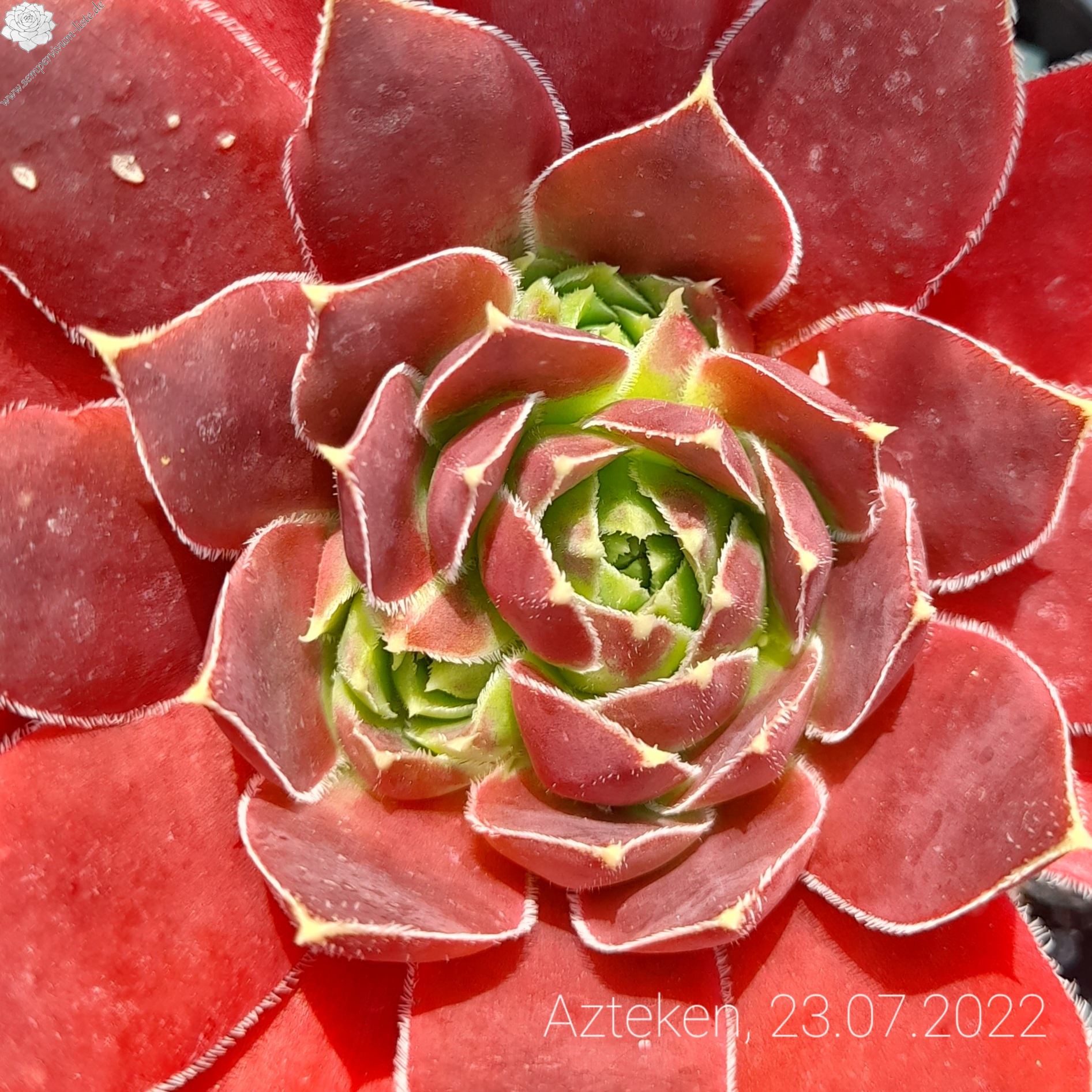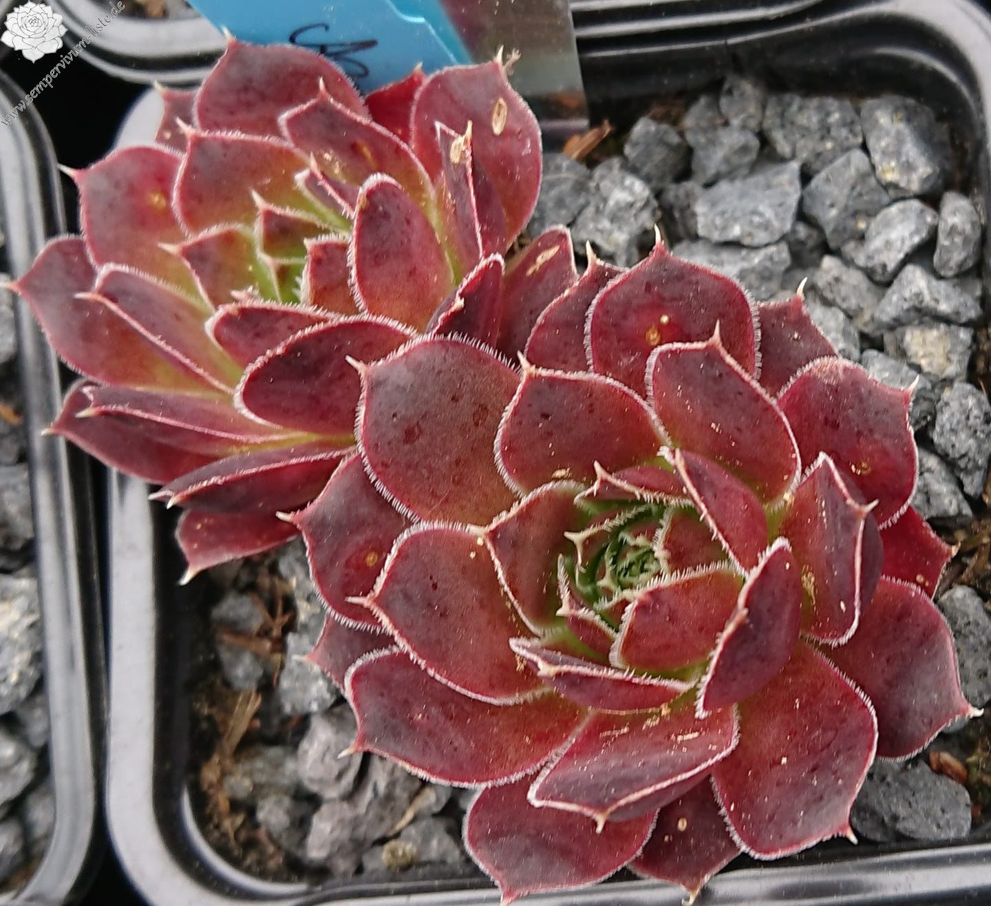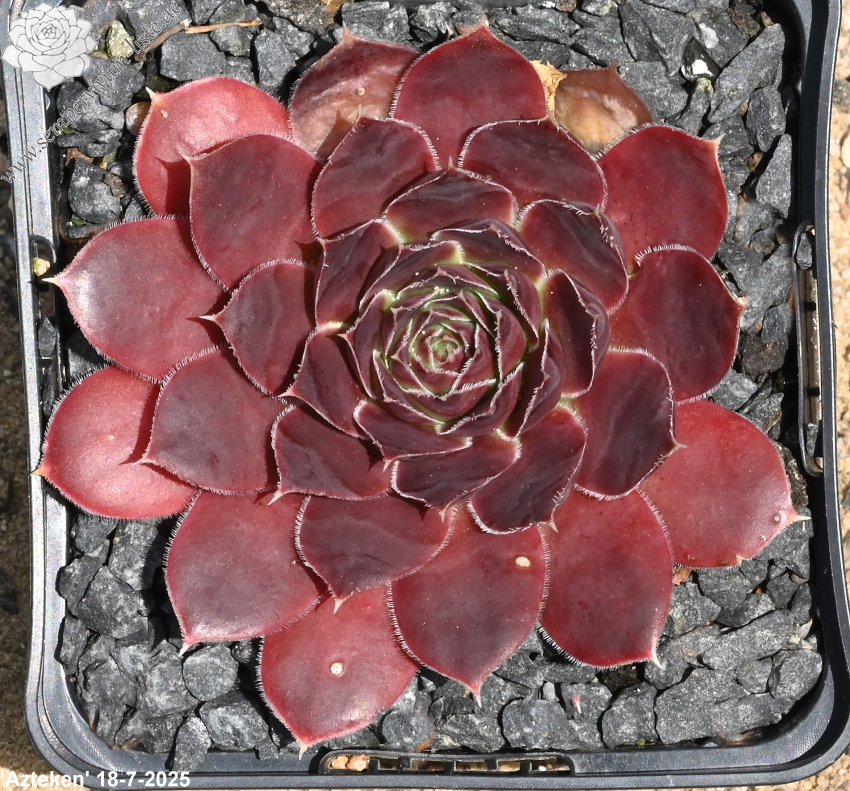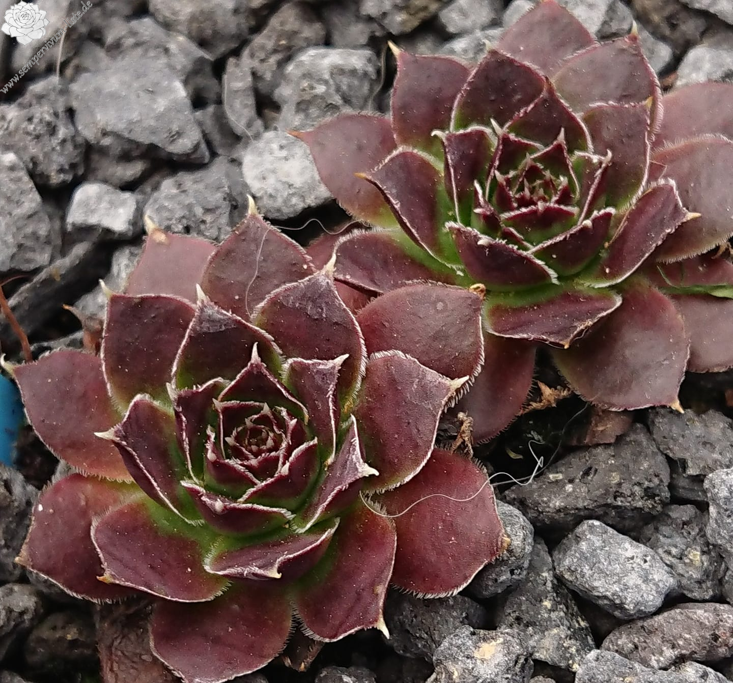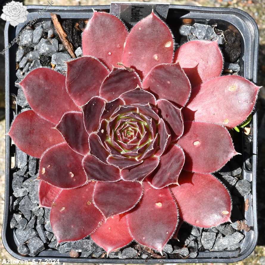 Rosetten bis 8 cm, Blätter lanzettlich, lang bespitzt, Herz helles Grün, Rest rosa, Blattränder hell, bewimpert