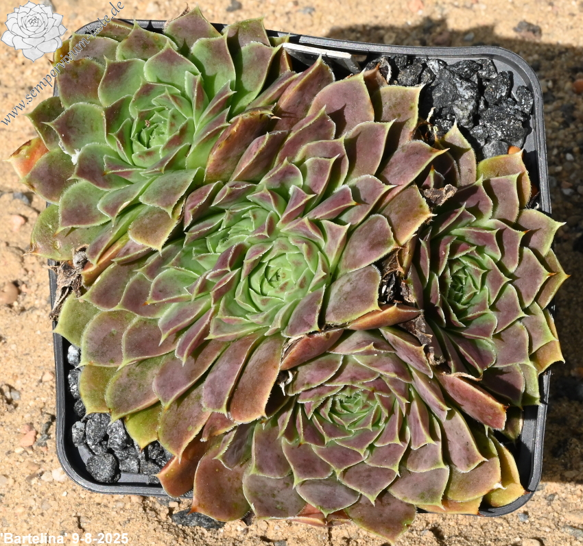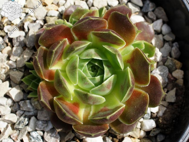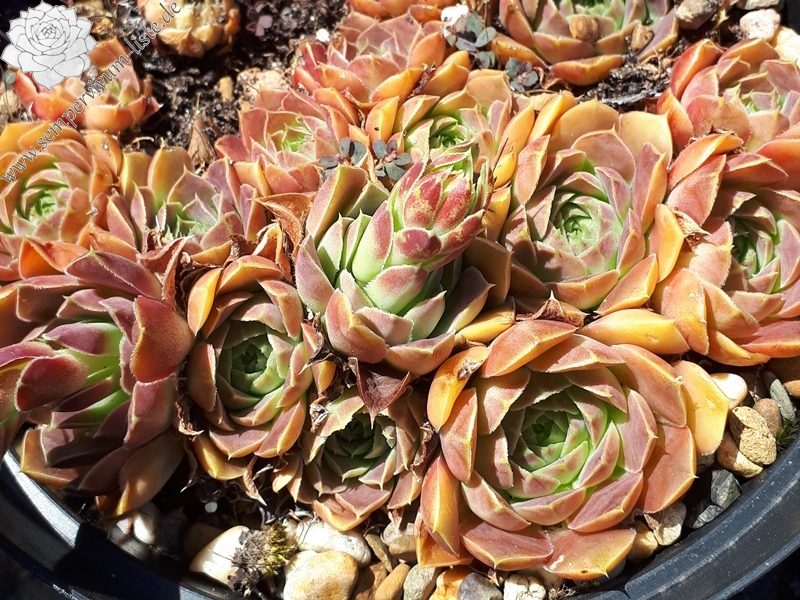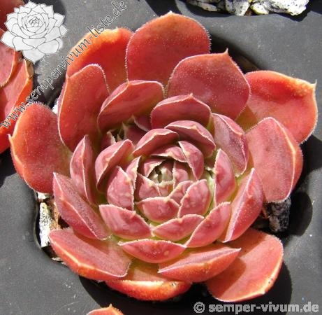 Rosetten bis 5 cm, Blätter kurz eiförmig, kurz bespitzt, lachsorange - lachsrot , Blattränder hell, leicht bewimpert