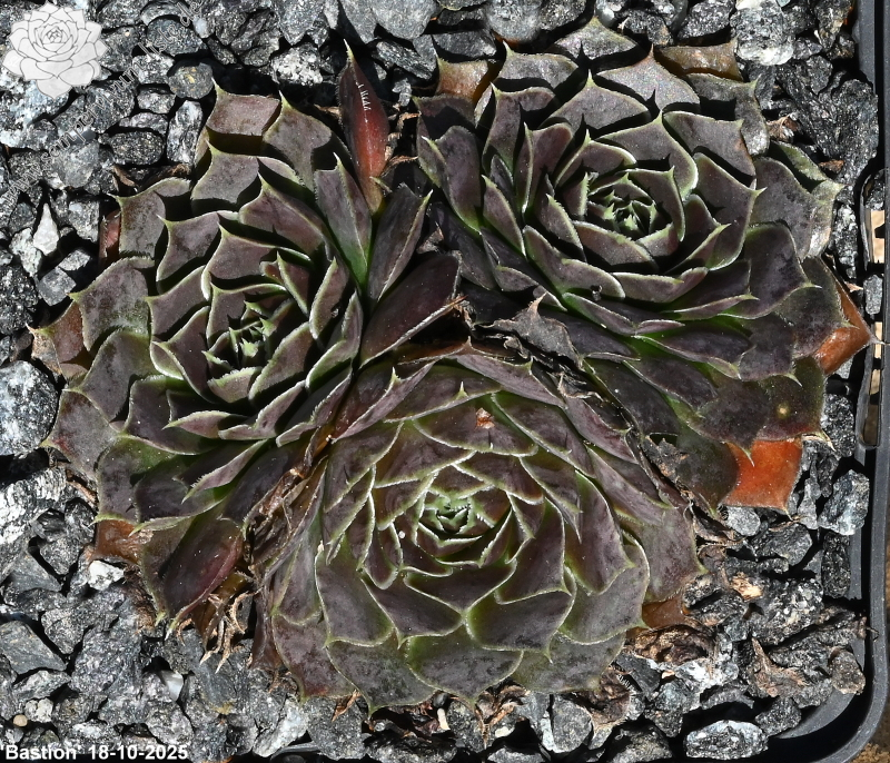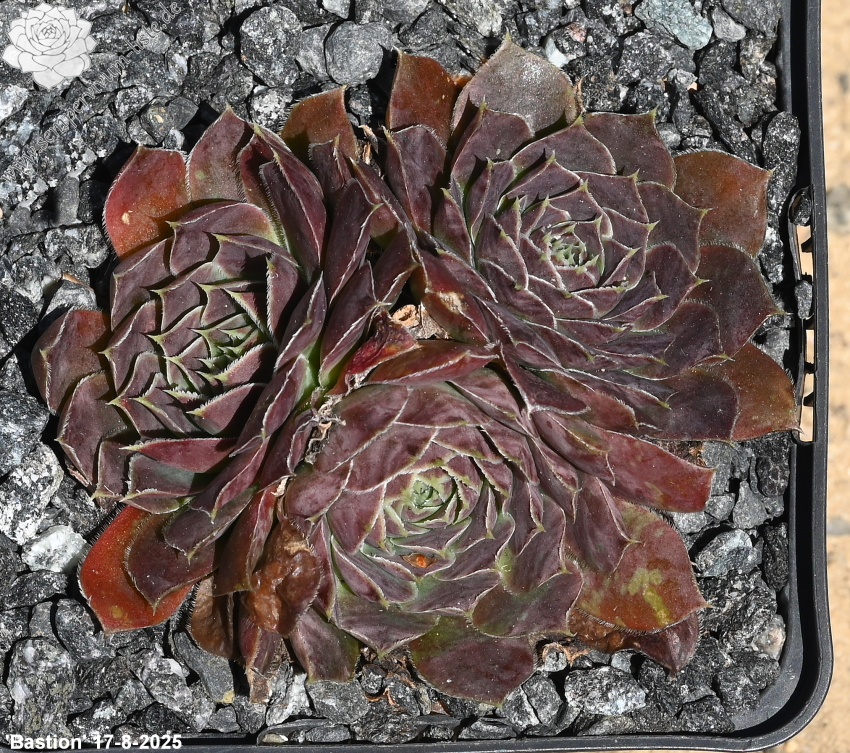 Die Züchtung von Cornelis Versteeg ist bislang kaum in Sammlungen zu finden. Der Donarsbart 'Bastion' formt mittelgroße Rosetten in verschiedenen rosafarbenen Schattierungen.