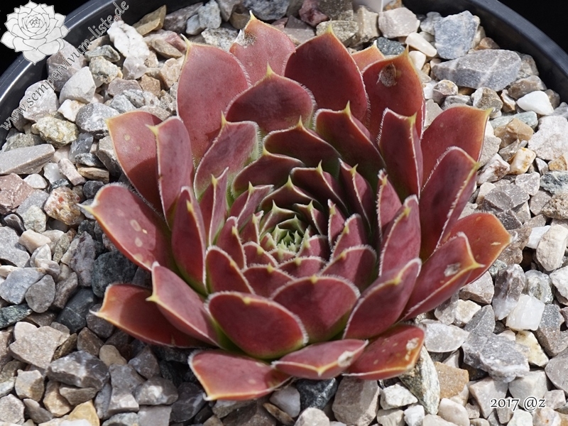 kleine Rosetten, Blätter eiförmig, kurz bespitzt, rot - rosa, Blattränder gelb, bewimpert