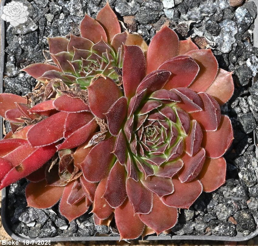 Rosetten 7 cm, Basis helles Grün in bräunlich rote Töne übergehend, leicht bewimpert