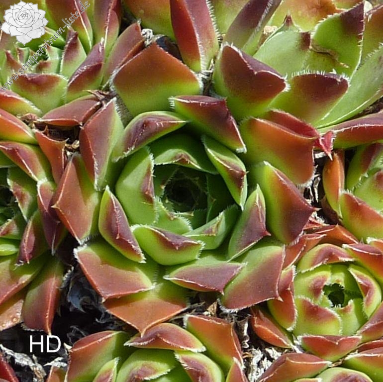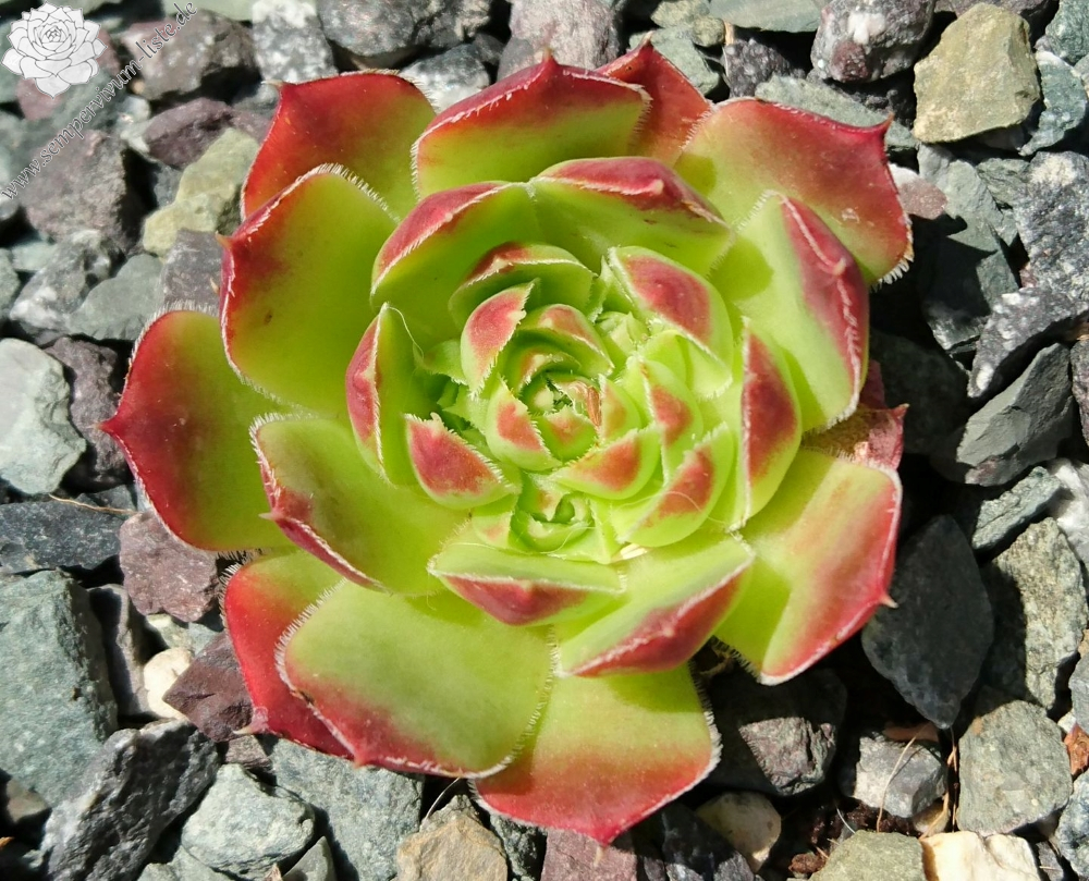 kleine Rosetten, helles Grün, Spitzen rot - braun, Ränder leicht bewimpert