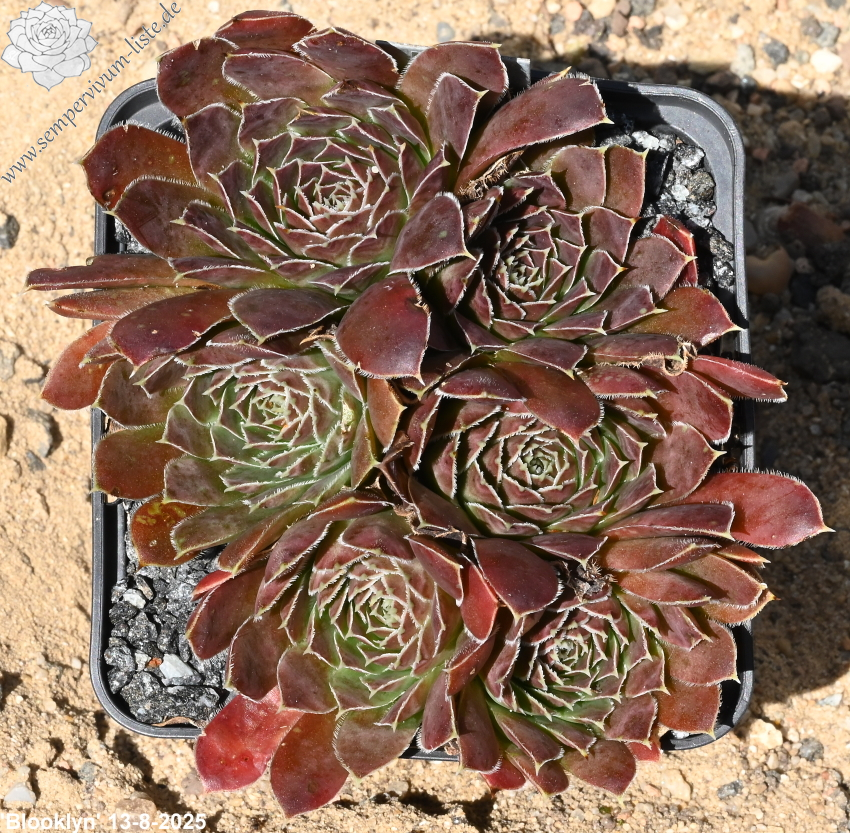 kleine Rosetten, Blätter eiförmig, kurz bespitzt, dunkles Braunrot, bewimpert
