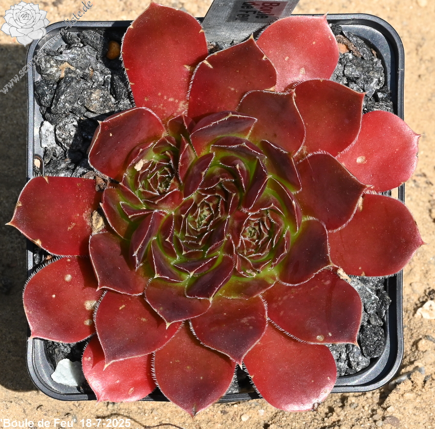 kleine Rosetten, Blätter lanzettlich. lang bespitzt, Herz gelb - grün, Rest leuchtendes helles Rot, Blattränder zart bewimpert