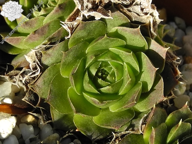 kleine Rosetten, olivgrün, bräunliche Spitzen