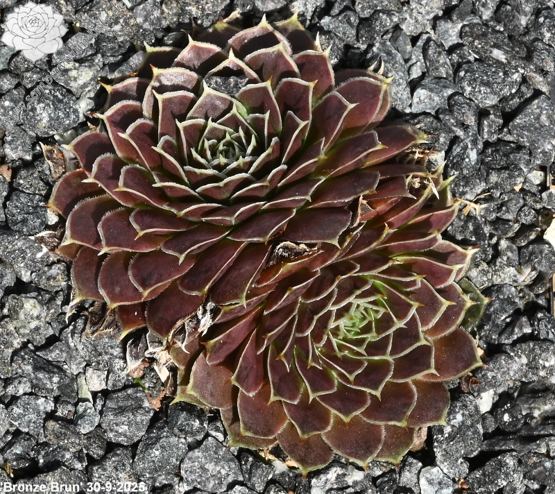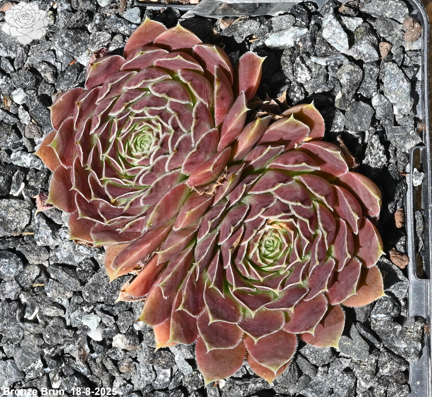 Rosetten 5 cm, lila-rot in hellbraun-gelb übergehend, Blattränder hell