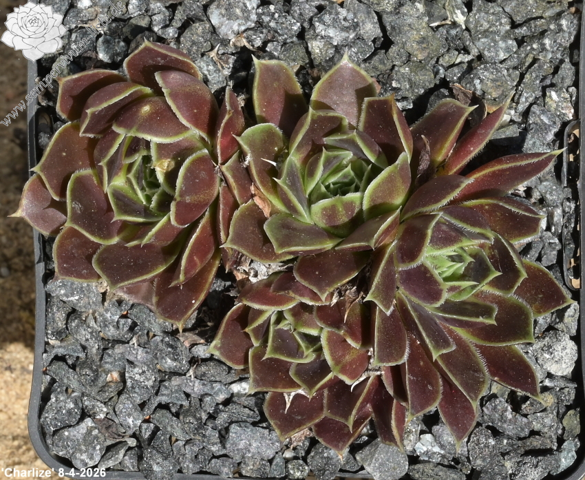 kleine Rosetten, Blätter keilförmig, kurz bespitzt, rot - rosa, Blattränder hell, kurz bewimpert