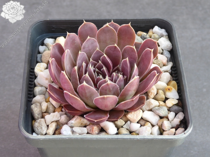 kleine Rosetten, Blätter eiförmig, kurz bespitzt, altrosa, Ränder hell, kurz bewimpert