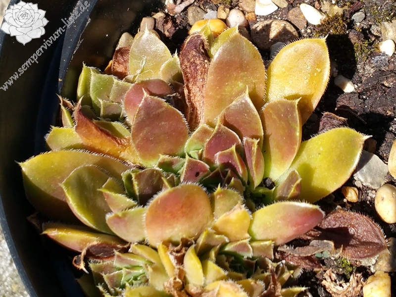 Rosetten bis 7 cm, bräunlich- rote Gesamtfärbung, Blattränder stark bewimpert