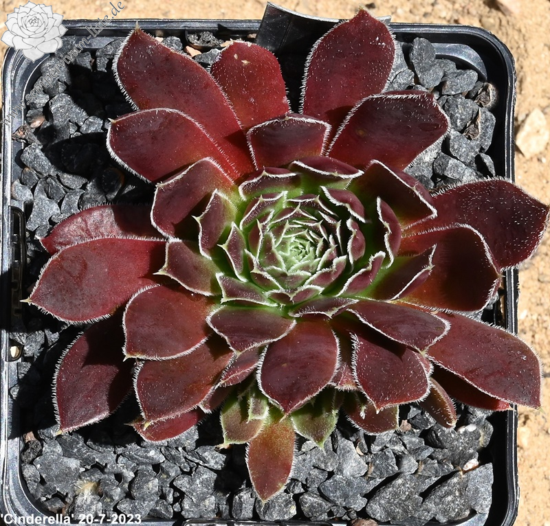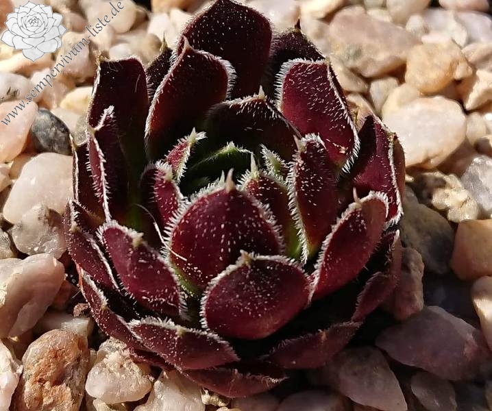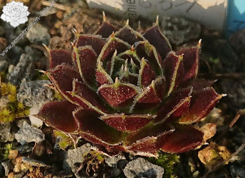 Rosetten bis 8 cm, Blätter oval, kurz bespitzt, signalviolett - purpurviolett, Blattränder grünlich, silbrig bewimpert