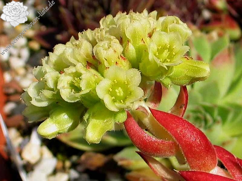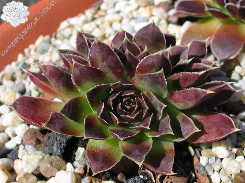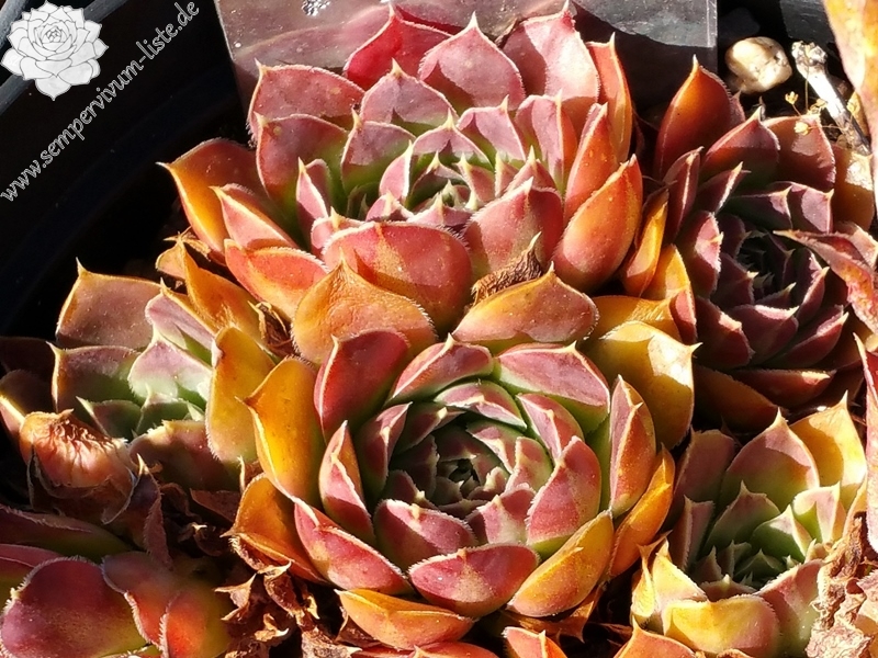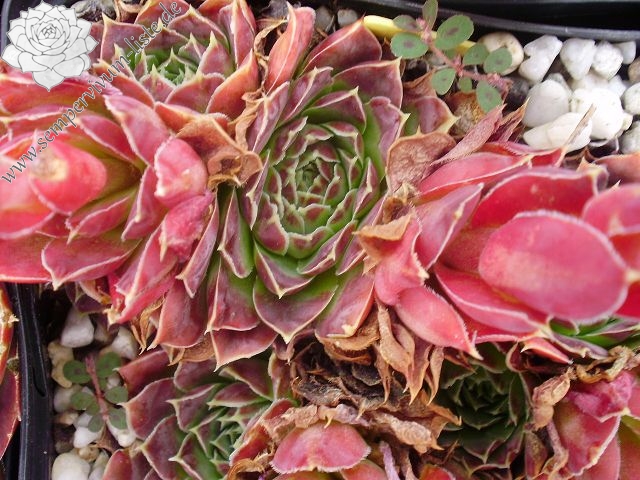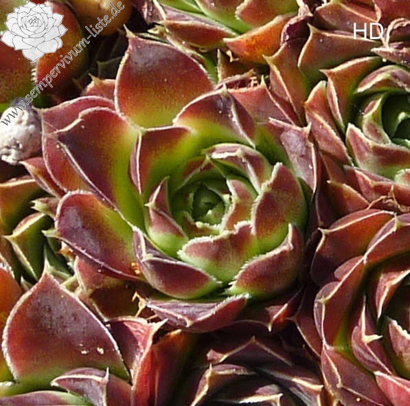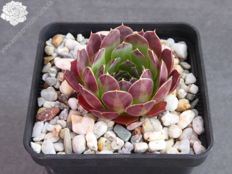 kleine Rosetten, Blätter oval länglich mit langer Spitze, Basis hellgrün, obere Blattdrittel dunkles rot