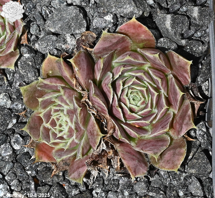 kleine Rosetten, Blätter keilförmig, Mischfarben helles oliv - trübes rosa