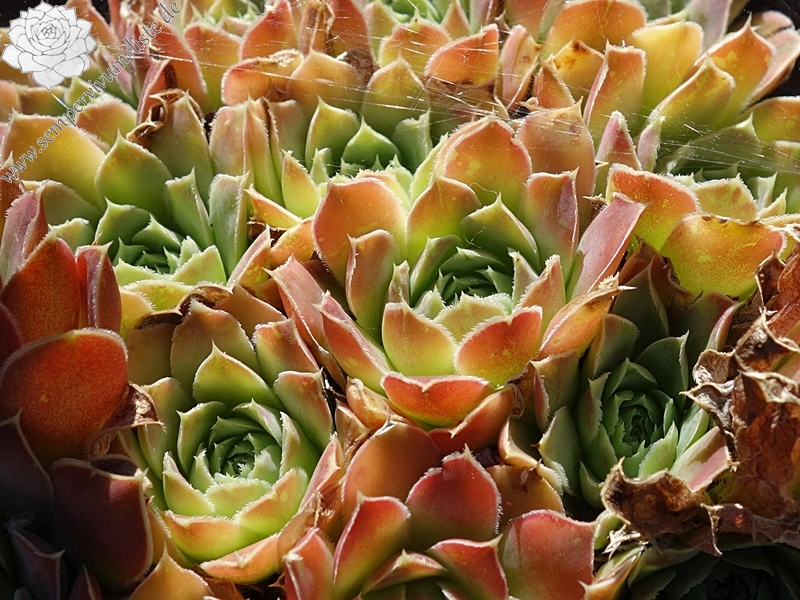 Rosetten bis 5 cm, Blätter kurz und keilförmig, lindgrün mit blass rosa Spitzen