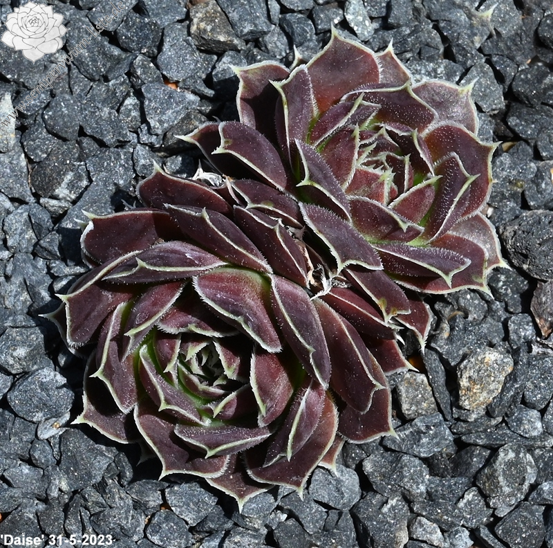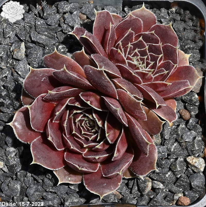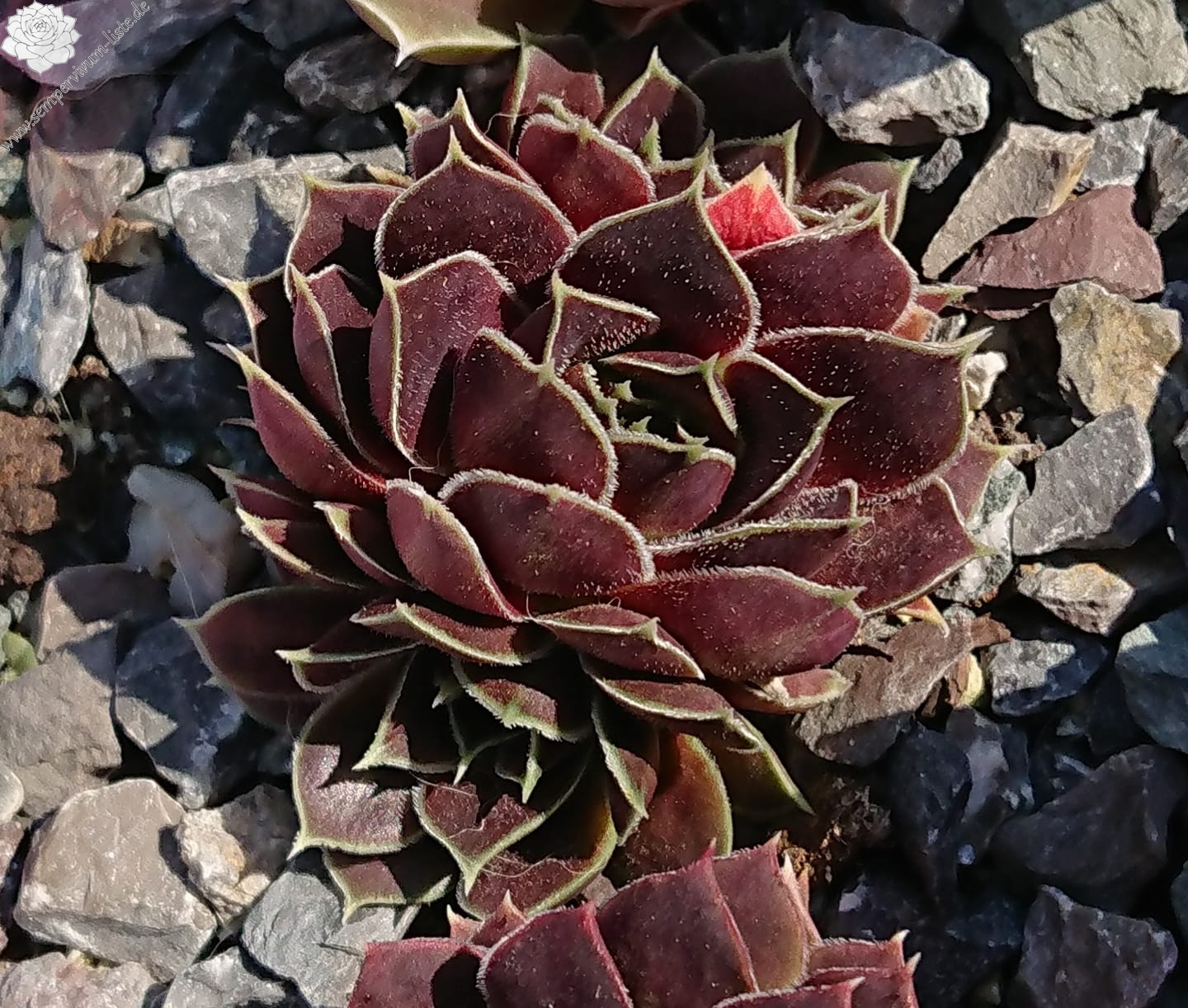 kleine Rosetten, Blätter oval, weinrot, Ränder hell, bewimpert