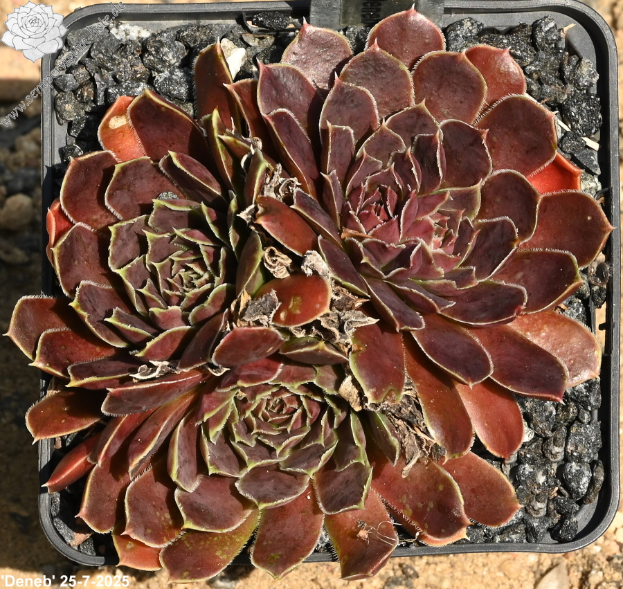 Rosetten bis 6 cm, Blätter rundlich, kurz bespitzt, Mischfarben grün - gelblich - rosa - braun