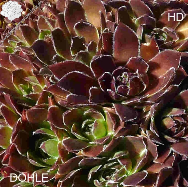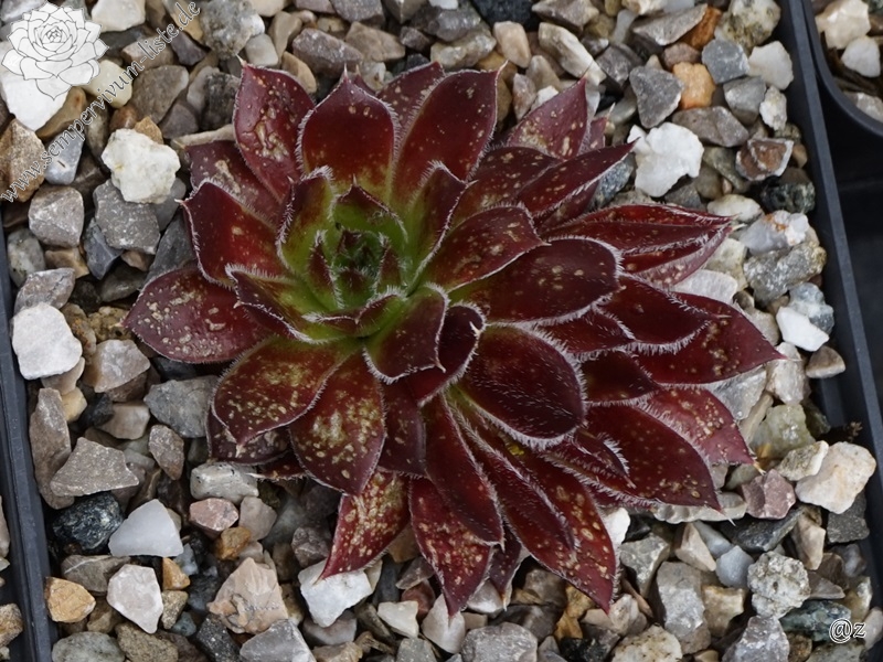 Rosetten bis 7 cm, Blätter lang oval, lang bespitzt, oxidrot - kastanienbraun , Blattränder silbrig bewimpert
