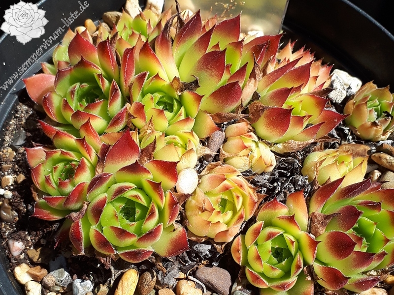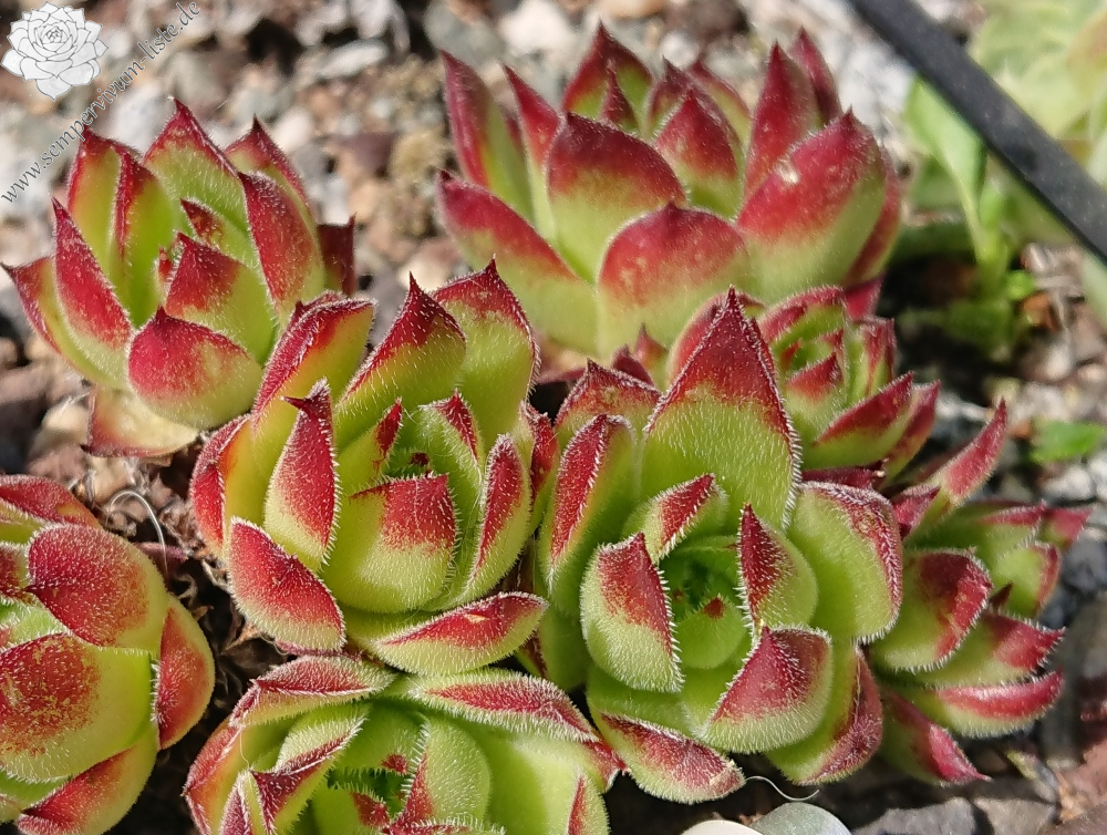 kleine Rosetten, kurze linealische Blätter , hellgrün, leuchtend rote Blattspitzen