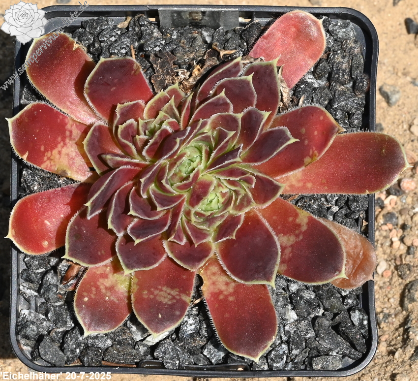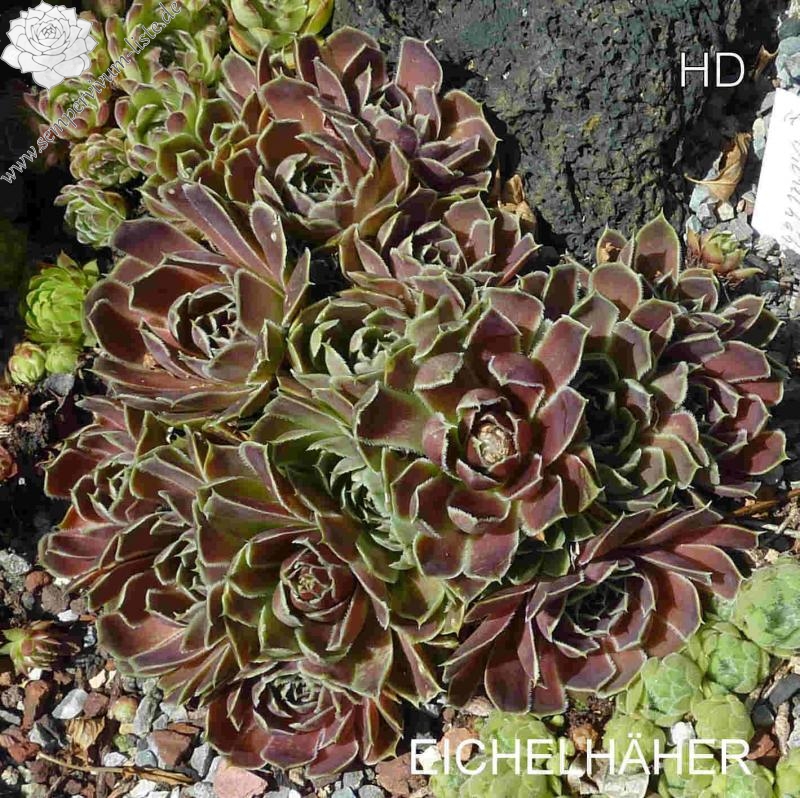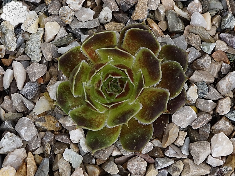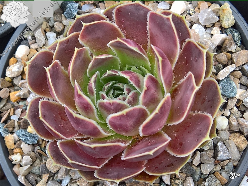 Rosetten bis 6 cm, Blätter lanzettlich, lang bspitzt, Mischfarben rot - braun, Rand grüngelb, leicht bewimpert