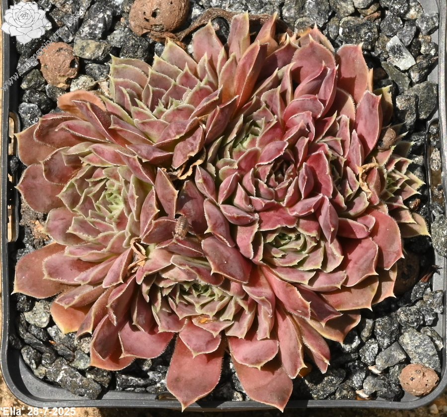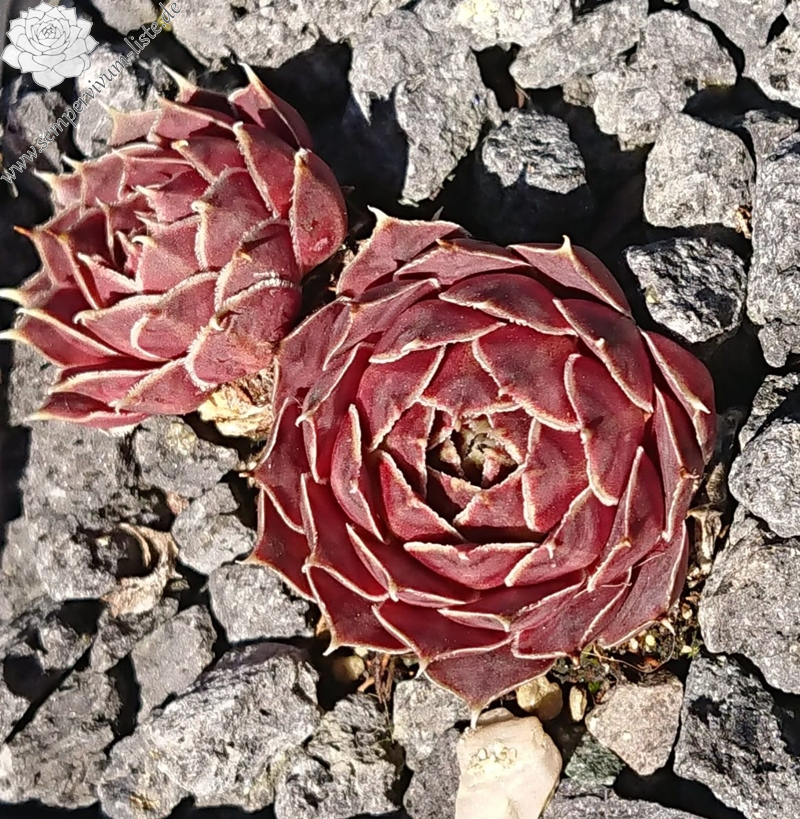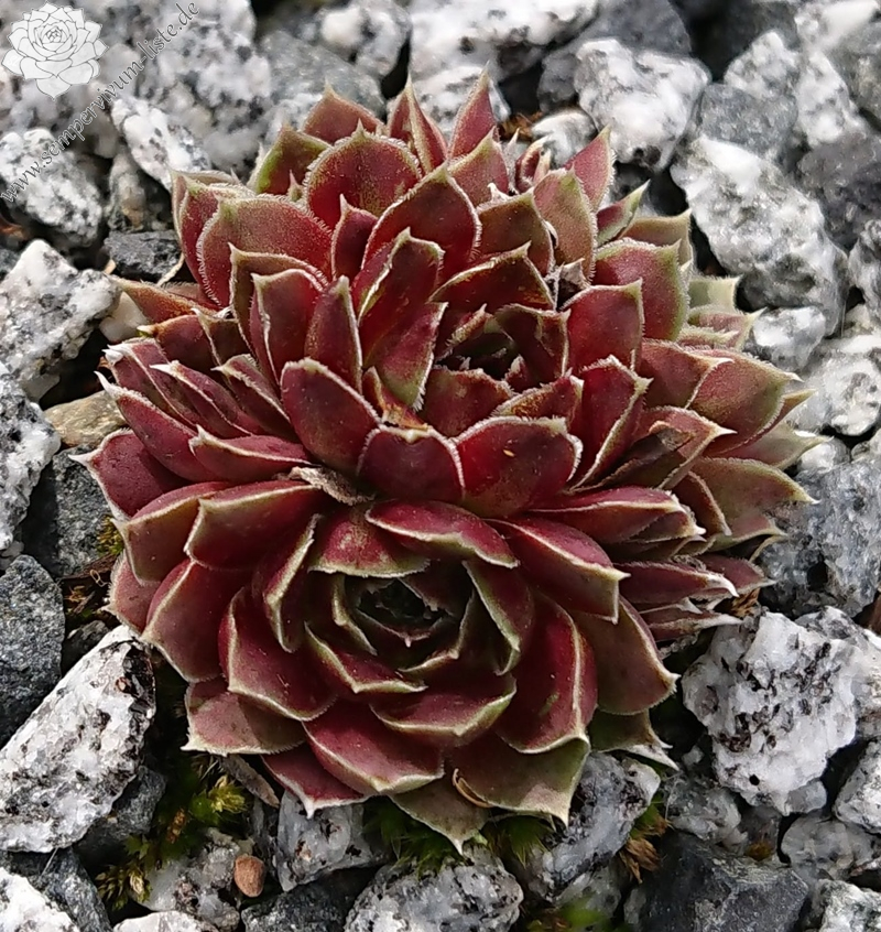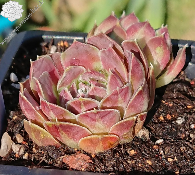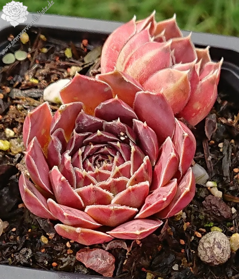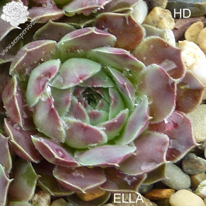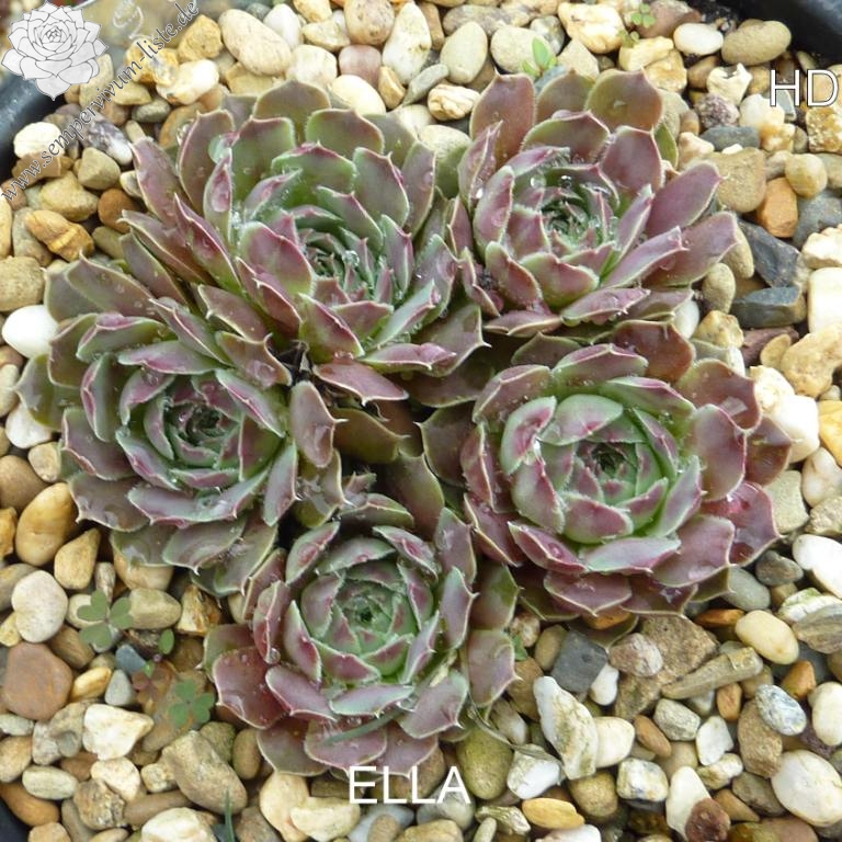 Rosetten bis 6 cm, Blätter keilförmig, kurz bespitzt, Mischfarben moosgrau - pastellviolett