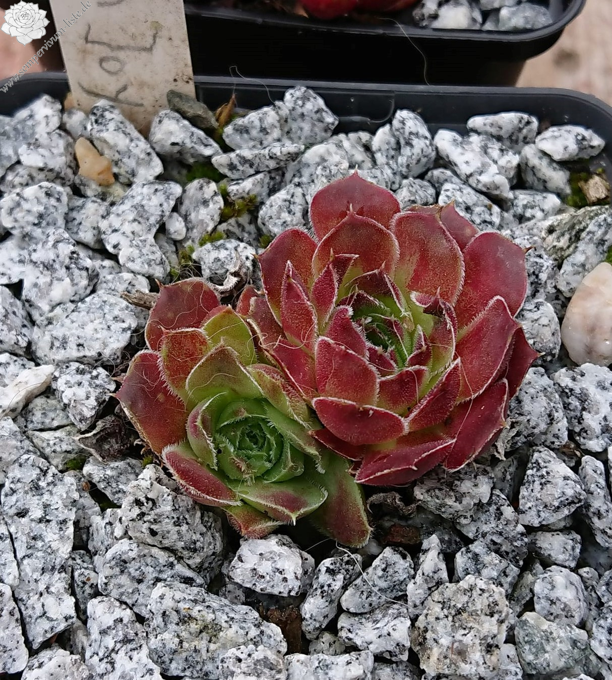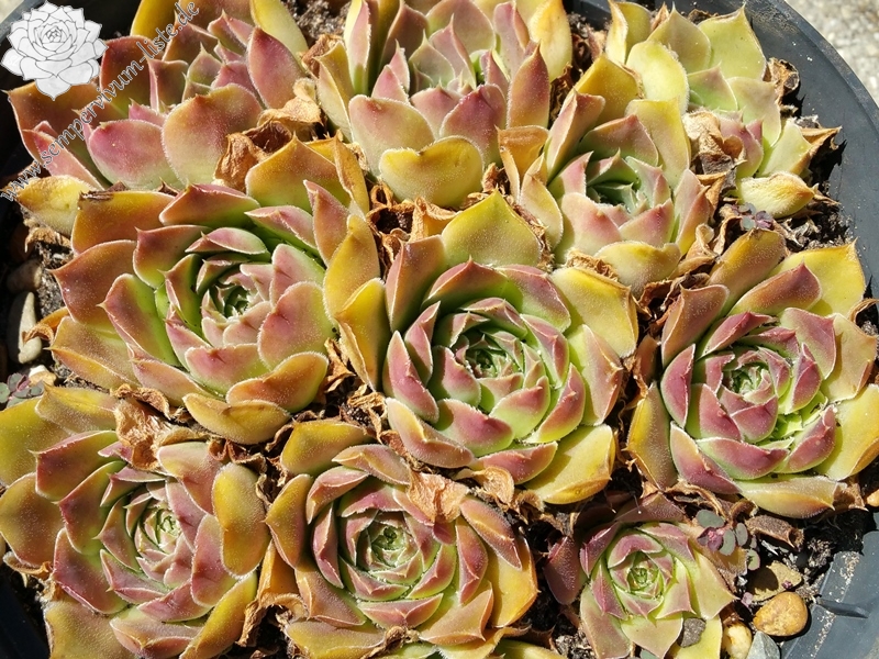 Rosetten bis 7 cm, spatelige Blätter, helles Braun-Orange zu rosa- lila Tönen übergehend