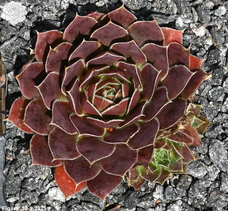 kleine Rosetten dunkles Braunrot, Blätter mit hellem Rand