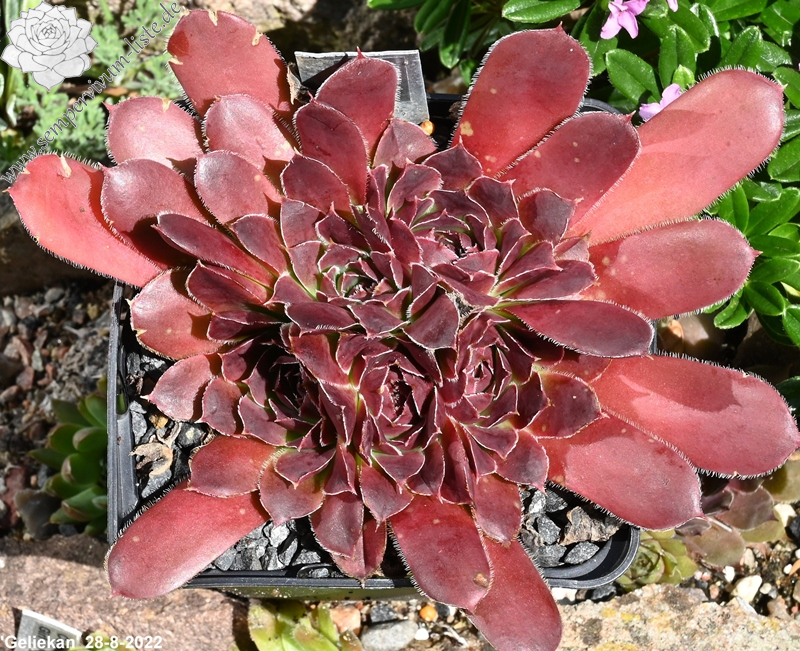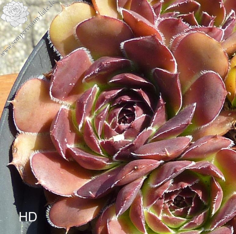 Rosetten bis 6cm, Blätter keilförmig, kurz bespitzt, Mischfarben hellgrün - gelb - rot , Ränder silbrig bewimpert