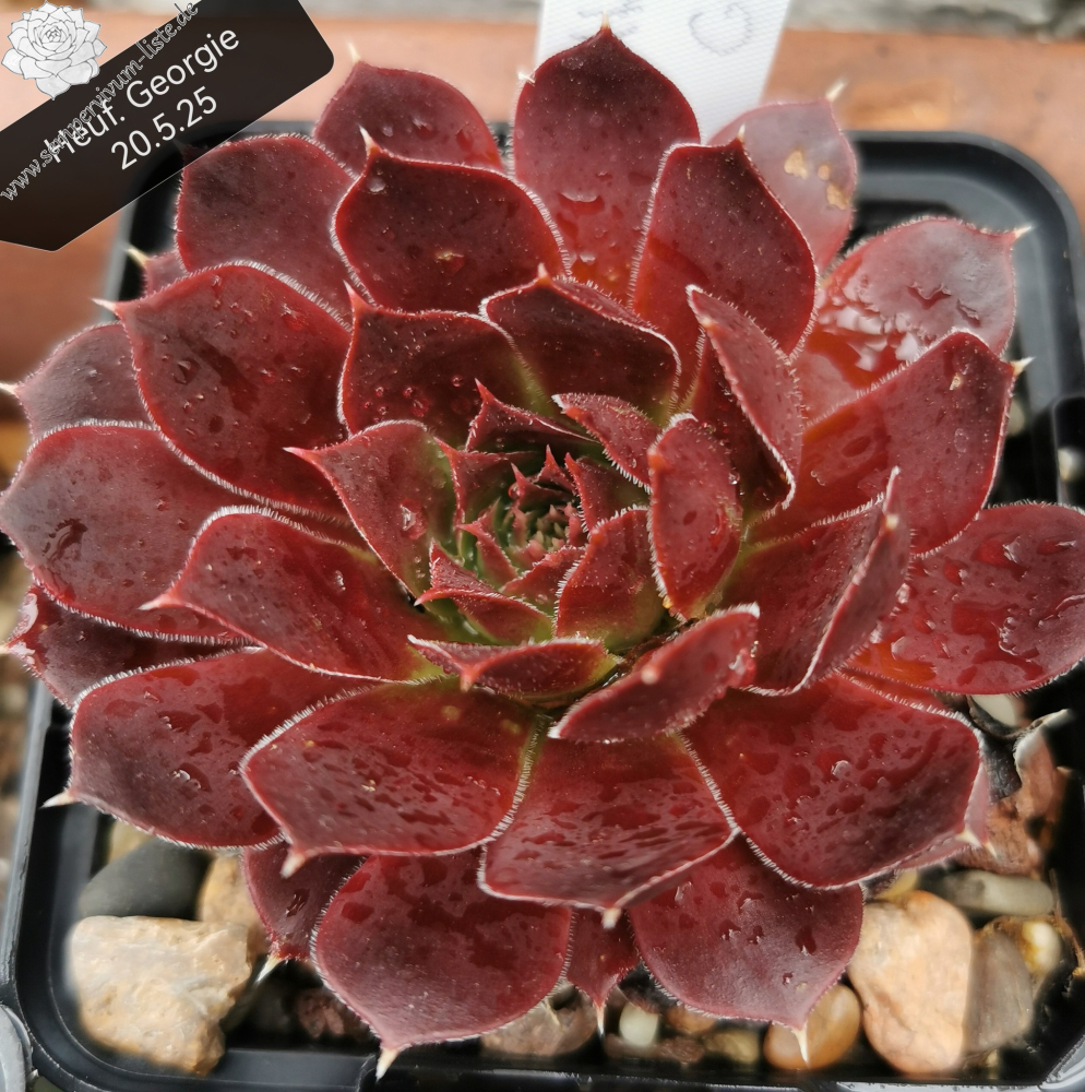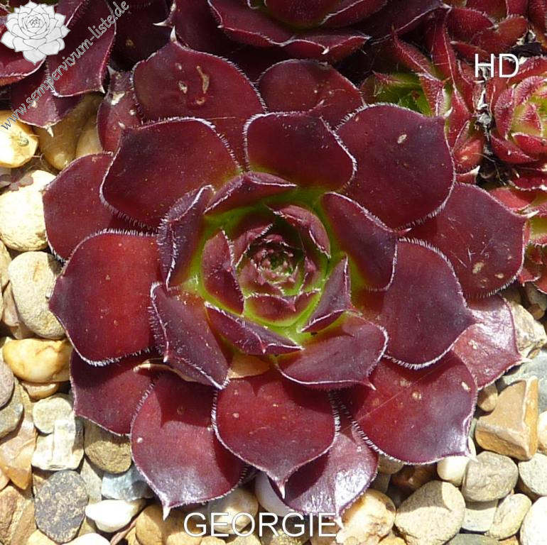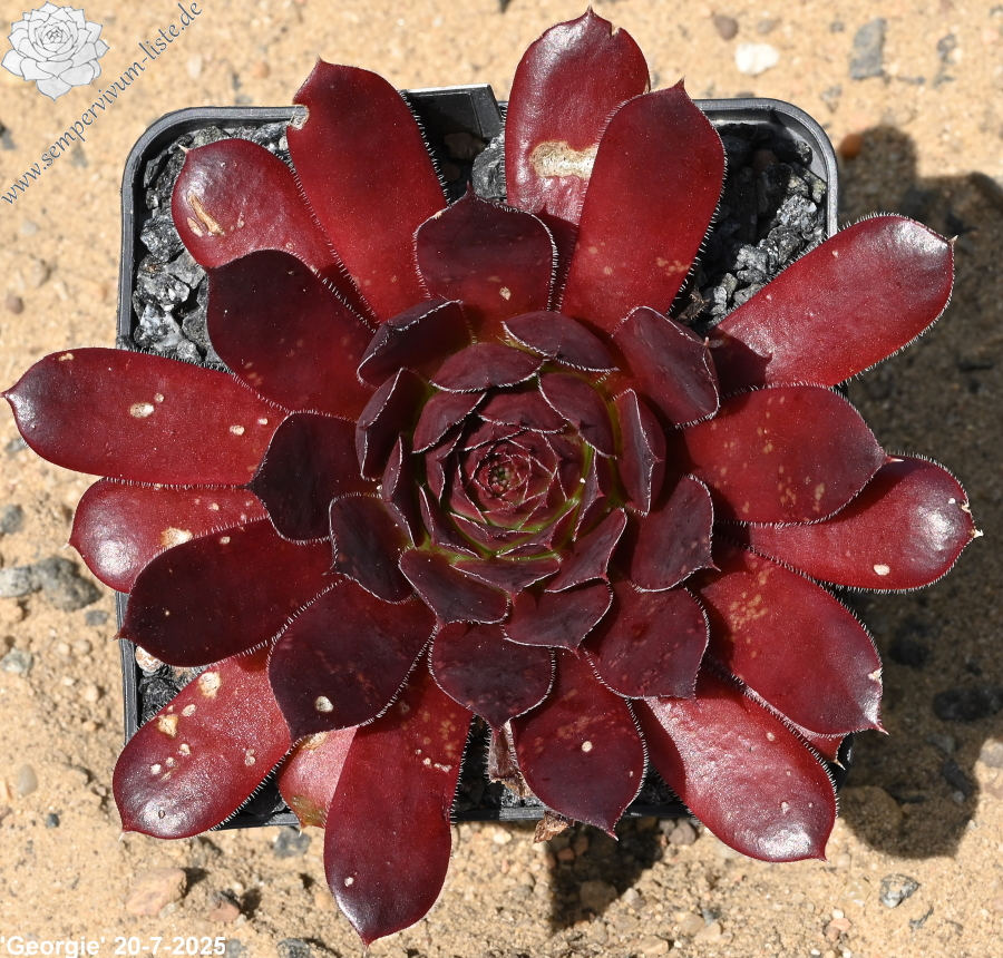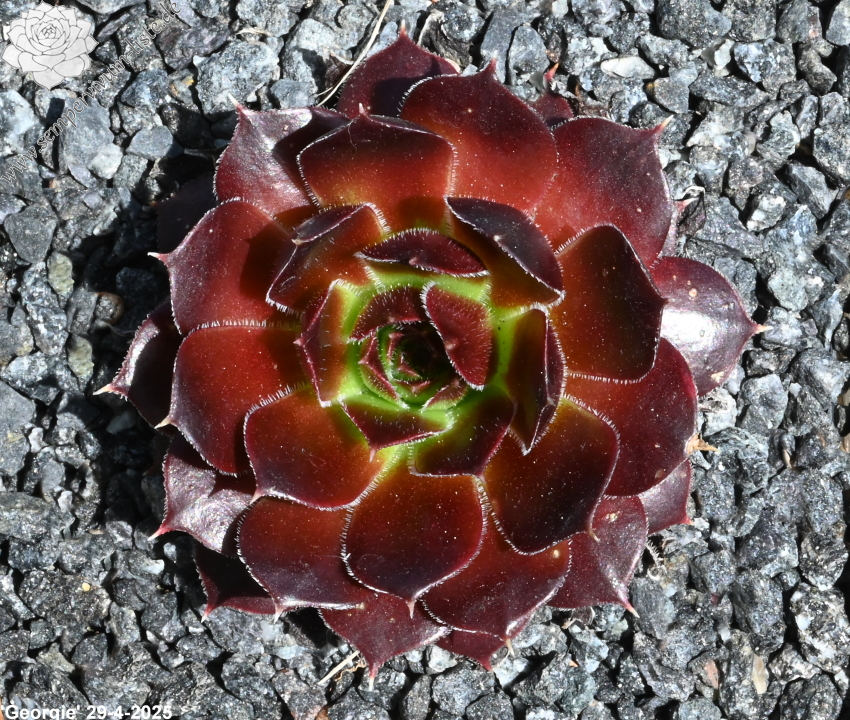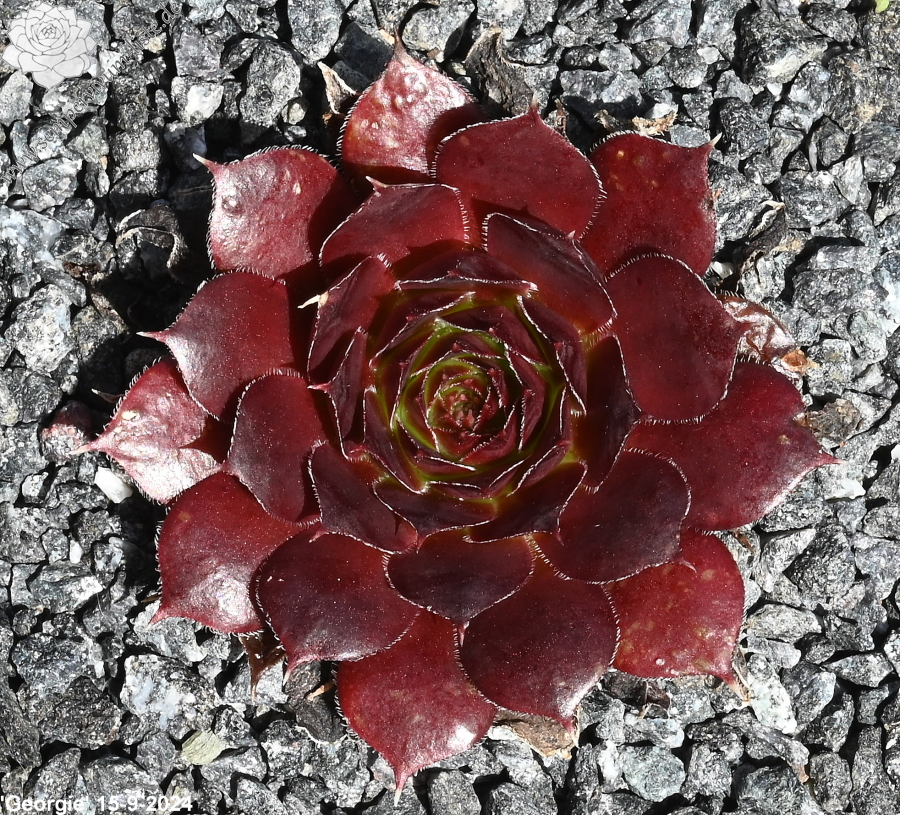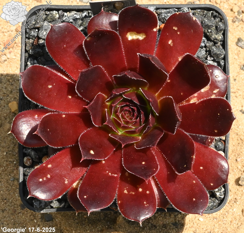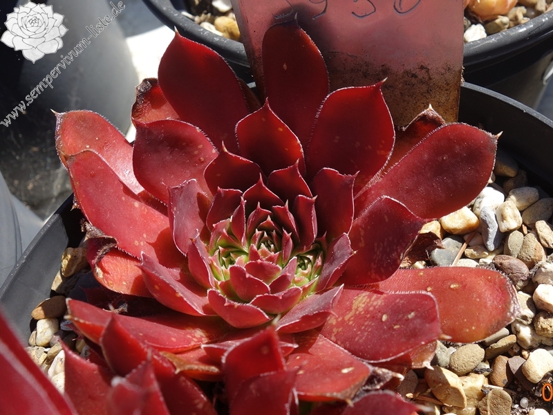 Rosetten bis 6 cm, Blätter breit spatelig, kurz bespitzt, Basis lindgrün, Rest weinrot, Ränder bewimpert