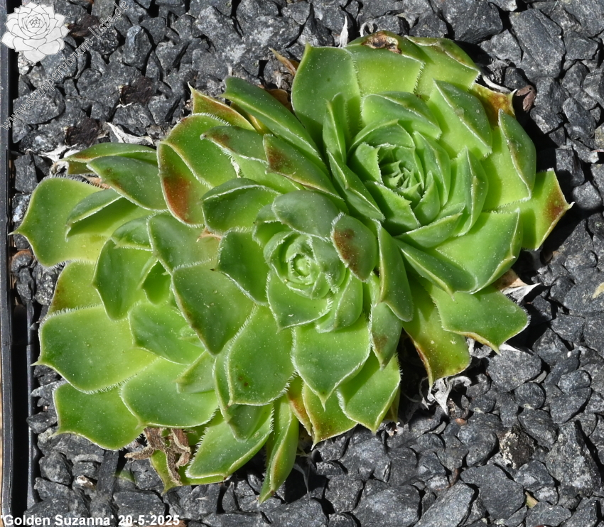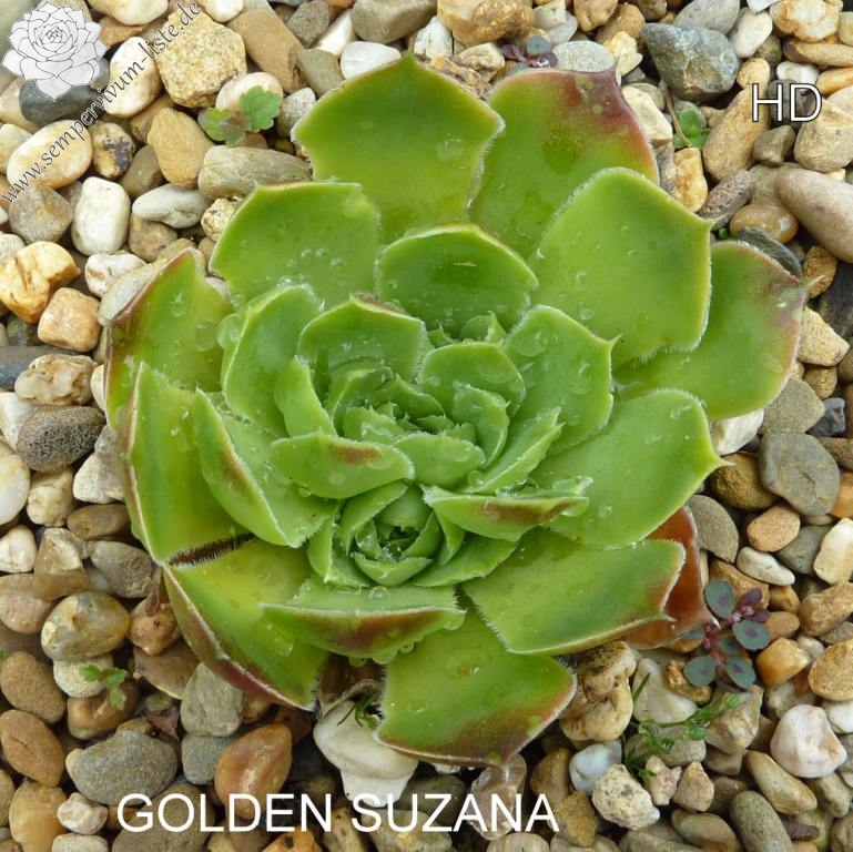 kleine Rosetten, Blätter breit spatelig, helles Grünlich - Gelb mit gelb - bräunlichen Flecken, im Frühjahr ist die gelbe Farbe intensiver