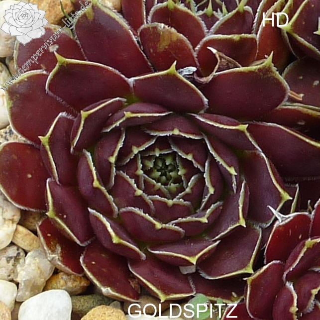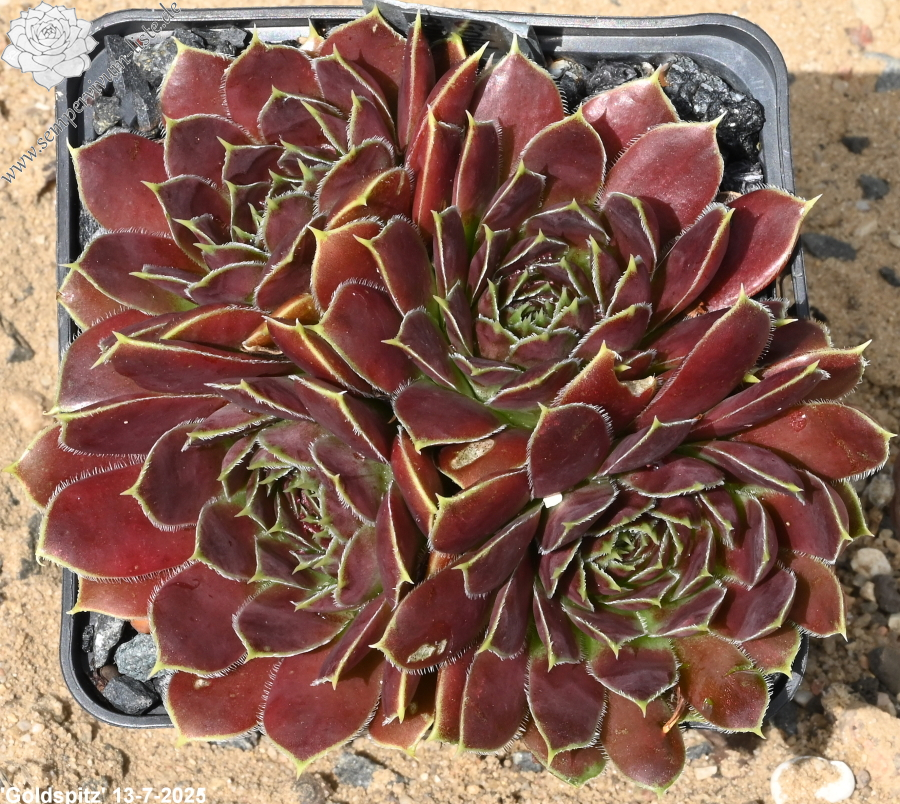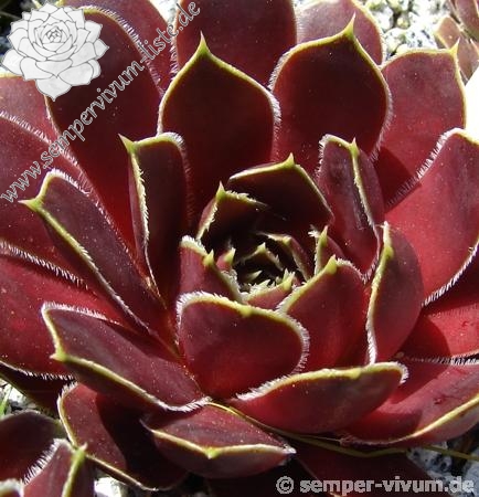 Rosetten 7 cm, braunrot mit gelbem Rand, spitz