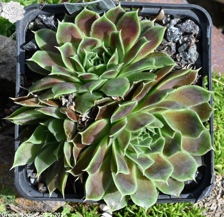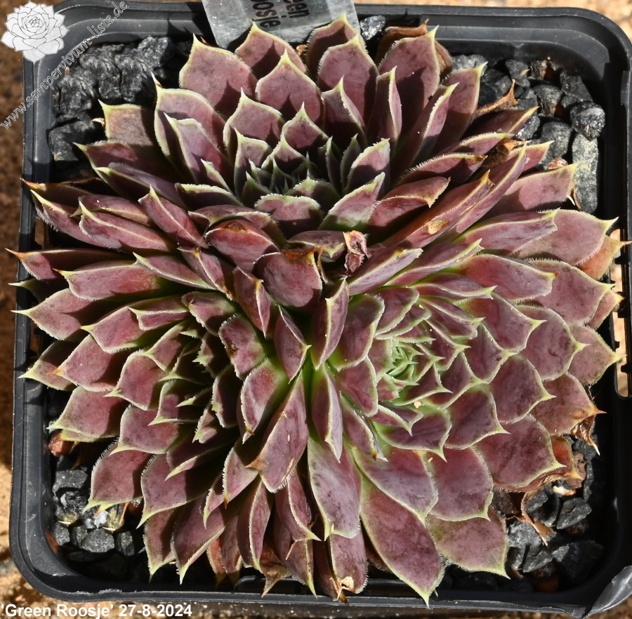 Rosetten bis 5 cm, ovale Blätter, lang bespitzt, Herz hellgrün, Rest rosa, Blattränder hell