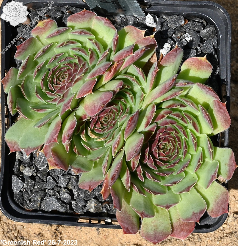 große Rosetten, spatelige Blätter, lang bespitzt, Basis hellgrün, obere Drittel leuchtend rot, Blattränder silbrig bewimpert