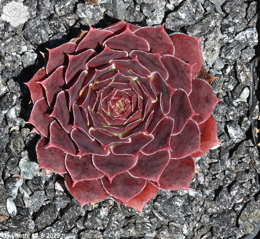 kleine Rosetten, Blätter breit spatelig, kurz bespitzt, signalviolett - rotviolett, Ränder zart bewimpert