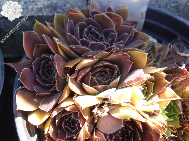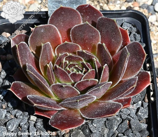 Rosetten bis 8 cm, Blätter oval, kurz bespitzt, erdbeerrot - himbeerrot, Blattränder bewimpert