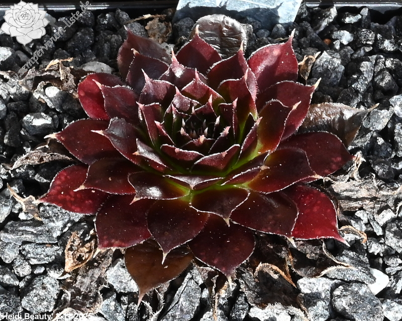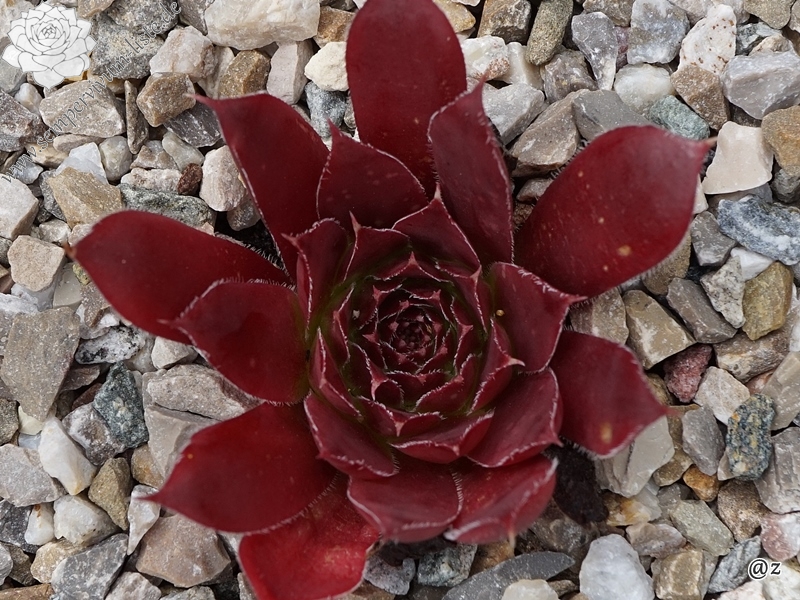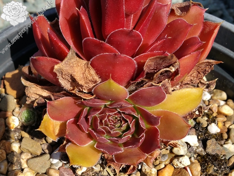 kleine Rosetten, Blätter breit keilförmig, kurz bespitzt, orientrot
