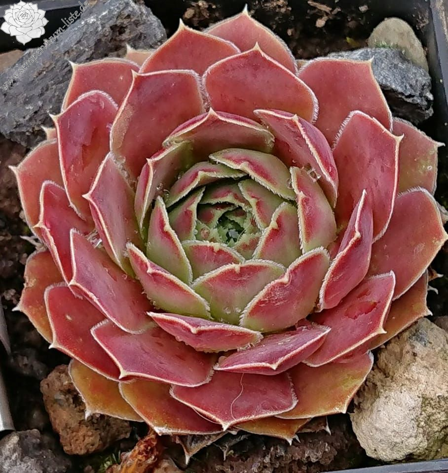 kleine Rosetten, Blätter breit keilförmig, kurz bespitzt, Mischfarben hellgrün - beigerot - sandgelb, Blattränder bewimpert