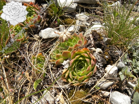 Zu den Pflanzen: Die Pflanzen waren schön, bis 6 cm im Durchschnitt. Leider hat keine Rosette geblüht. Jovibarba heuffelii var. glabra wächst hier oft unter den Steinen. Die Rosetten haben immer lange Wurzeln.