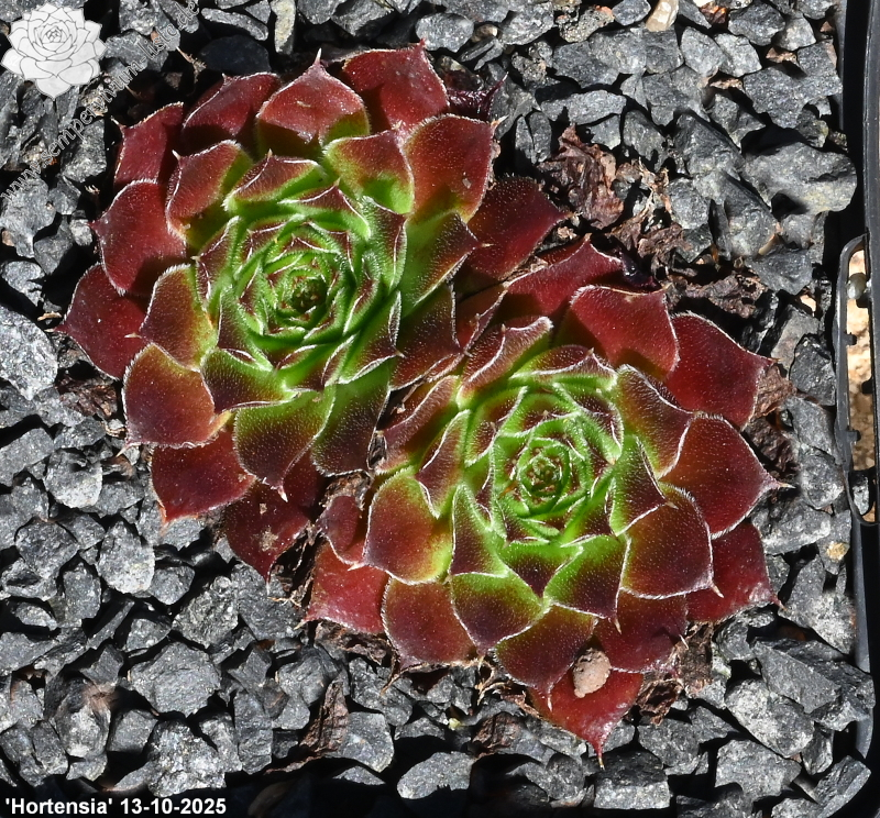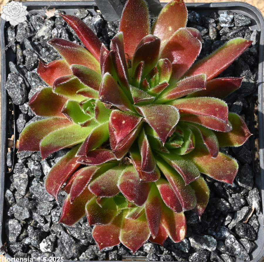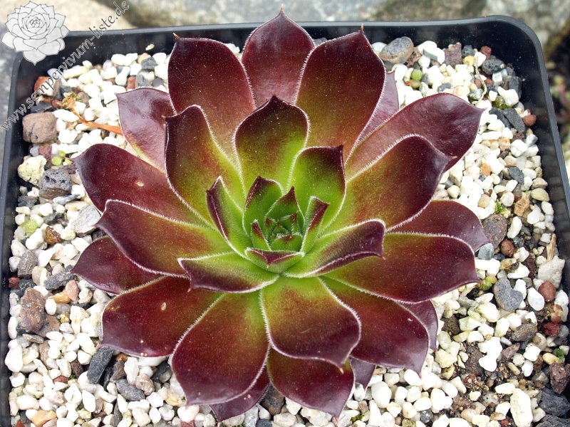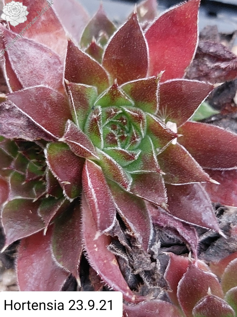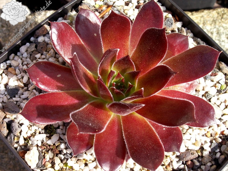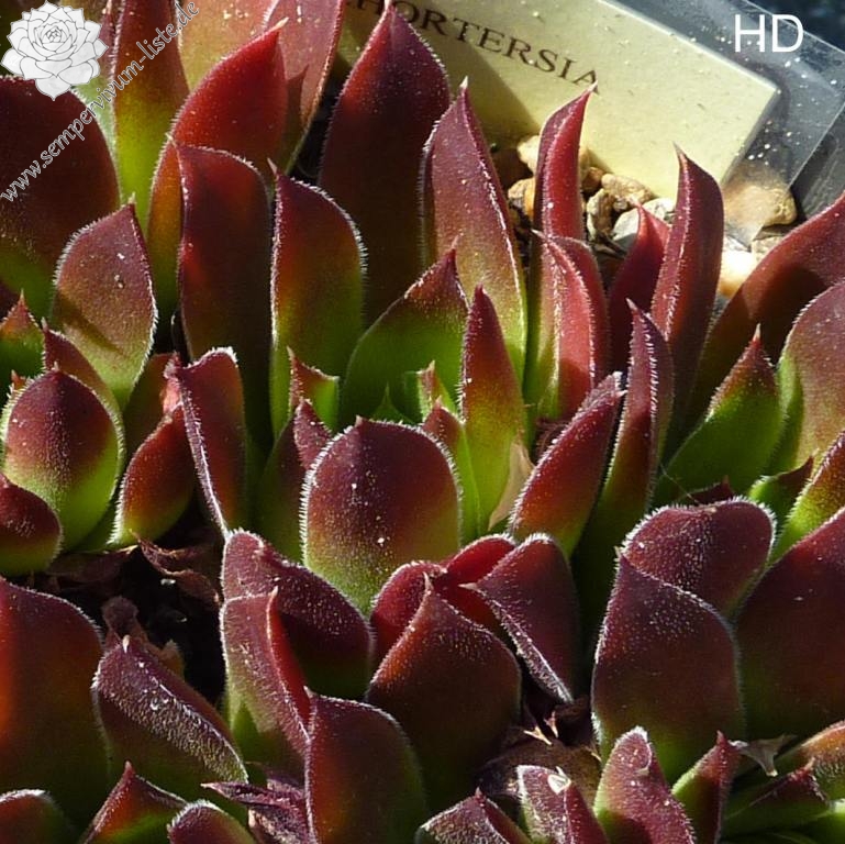 kleine Rosetten, wenig beblättert, Blätter linealisch, lang bespitzt, samtige Substanz, Basis helles grün, Rest dunkles leuchtendes rot, Blattränder silbern bewimpert