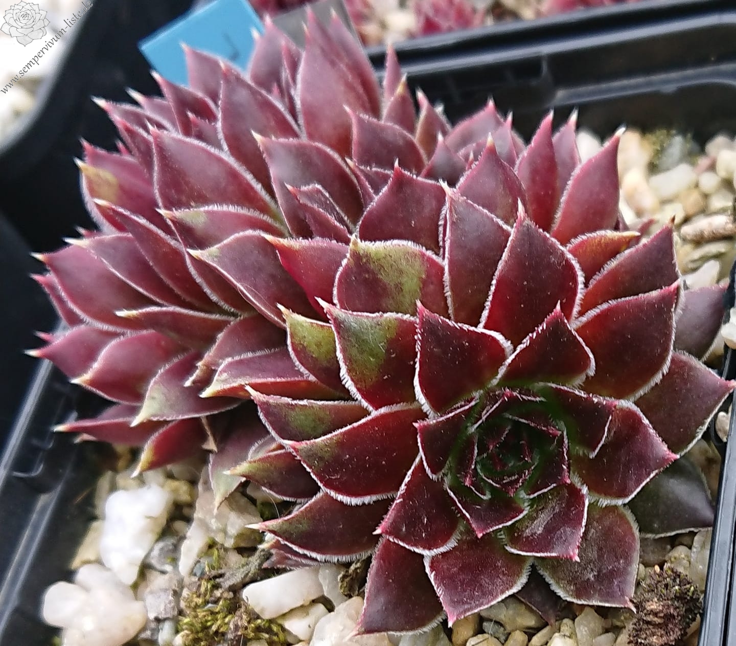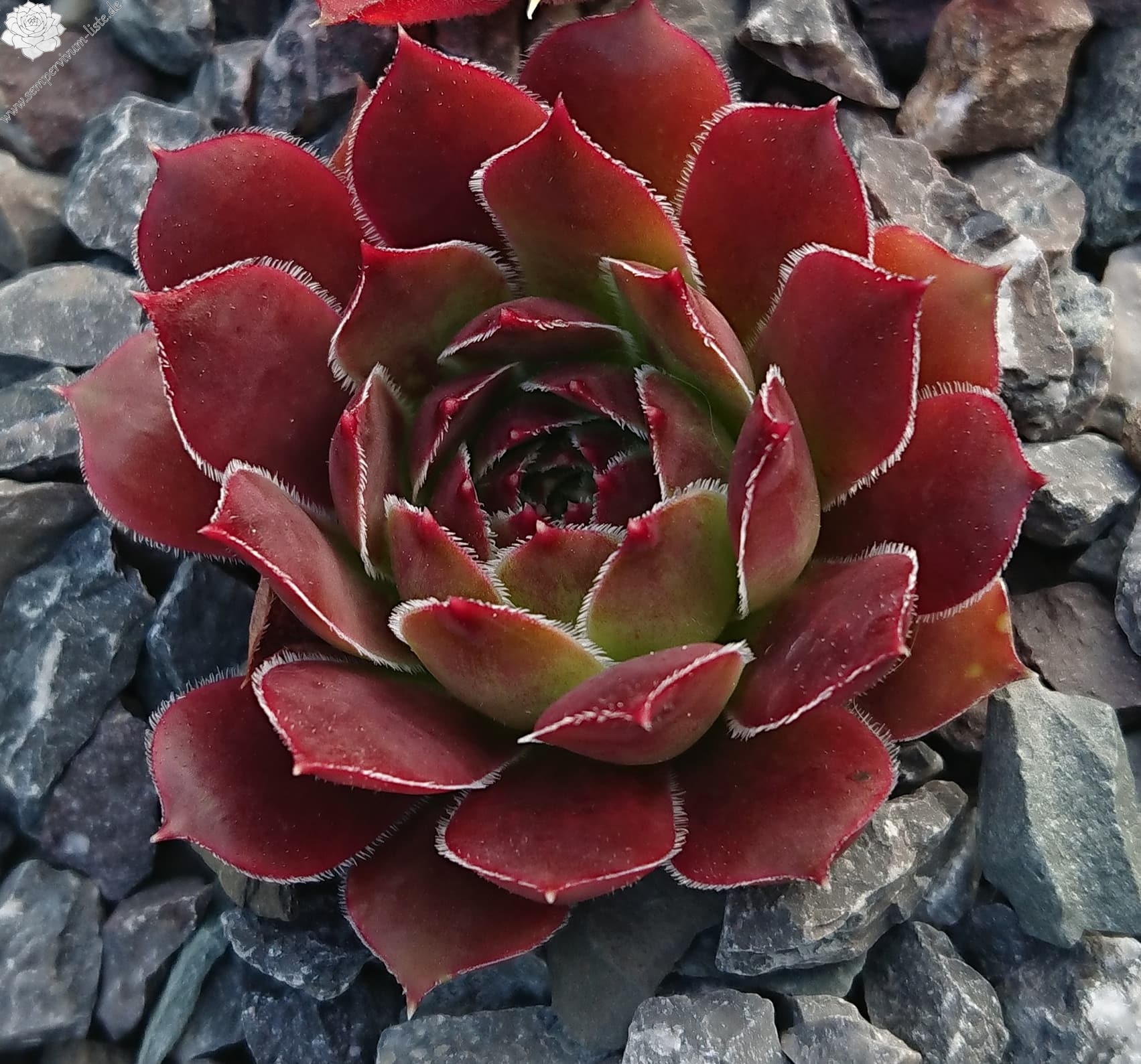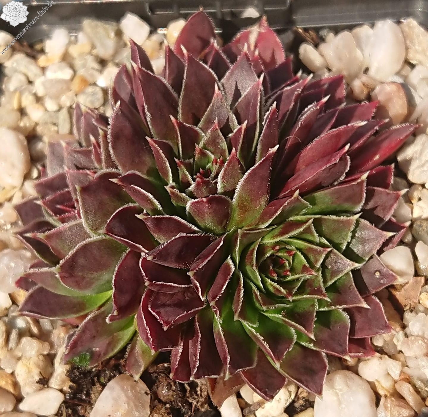 kleine Rosetten, Blätter oval, weinrot, Blättränder bewimpert