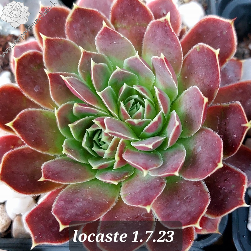 kleine Rosetten, Blätter lanzettlich, lang bespitzt, Mischtöne grün - rosa - rot , Blattränder hell, kurz bewimpert