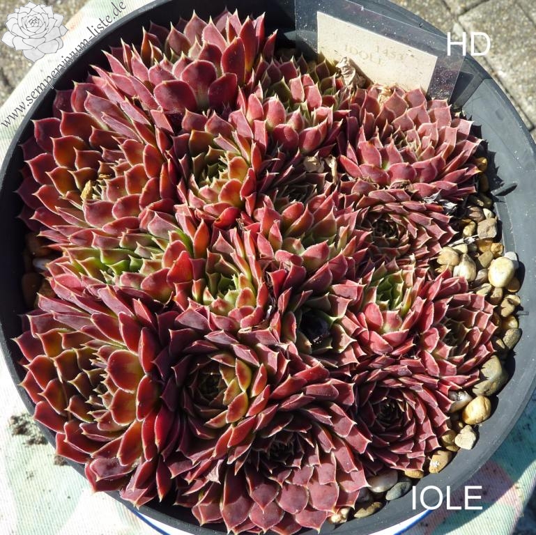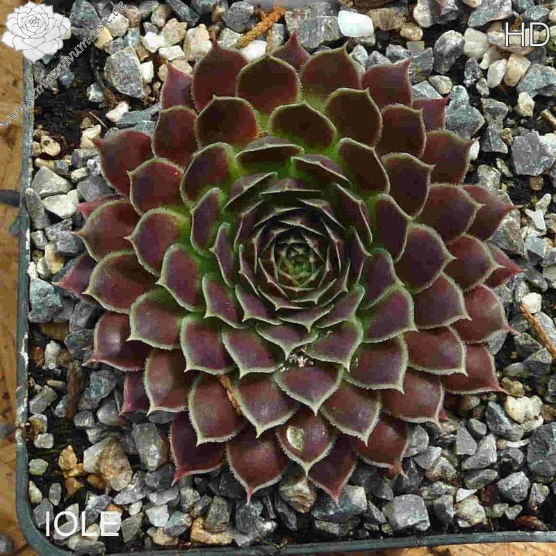 Rosetten bis 6 cm, Blätter oval, lang bespitzt, dunkles Rot, Blattränder hell