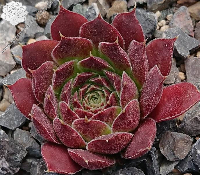 Rosetten bis 8 cm, Blätter spatelig, kurz bespitzt, samtige Substanz, hellrosa - verkehrspurpur, Zentrum hellgrün