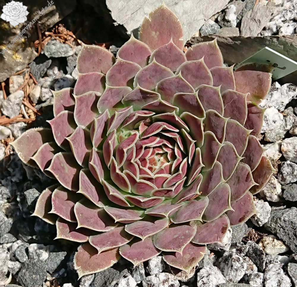 Rosetten bis 5 cm, Blätter rundlich, kurz bespitzt, altrosa - erikaviolett, Blattränder hell