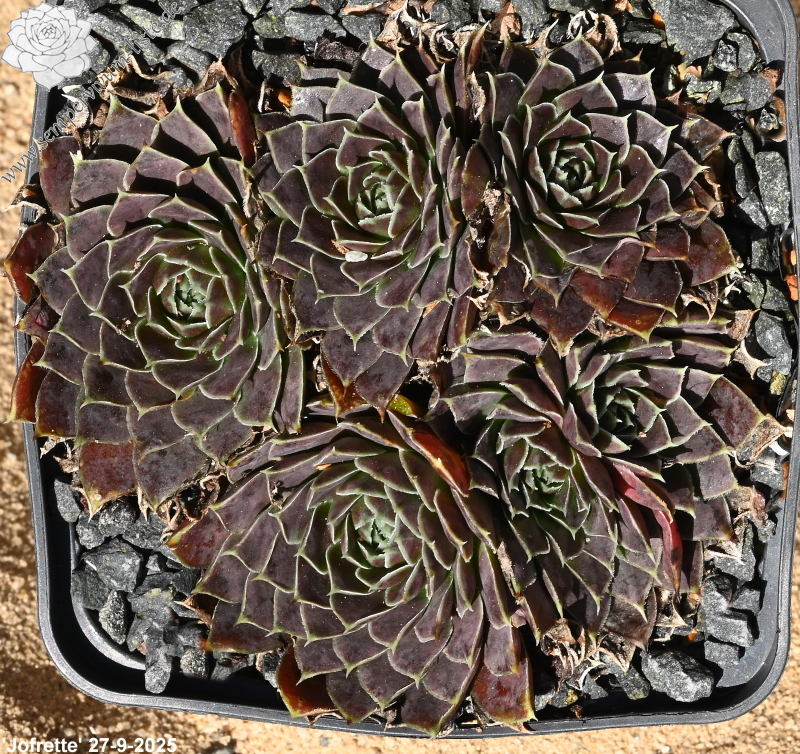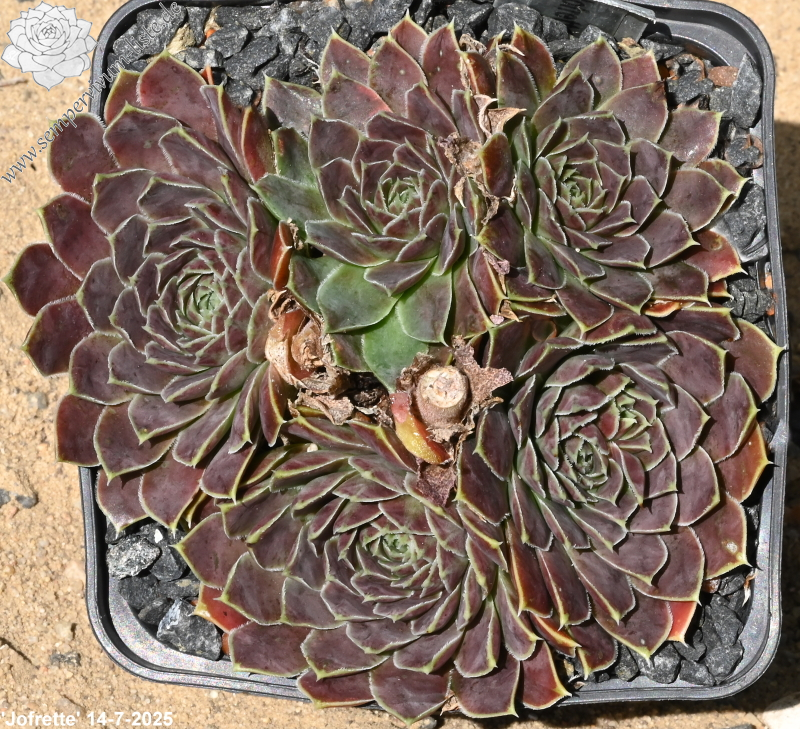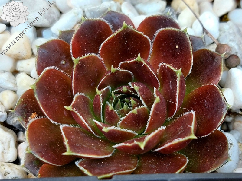Rosetten bis 7 cm, Blätter breit spatelig, kurz bespitzt, weinrot - oxidrot, Blattränder bewimpert