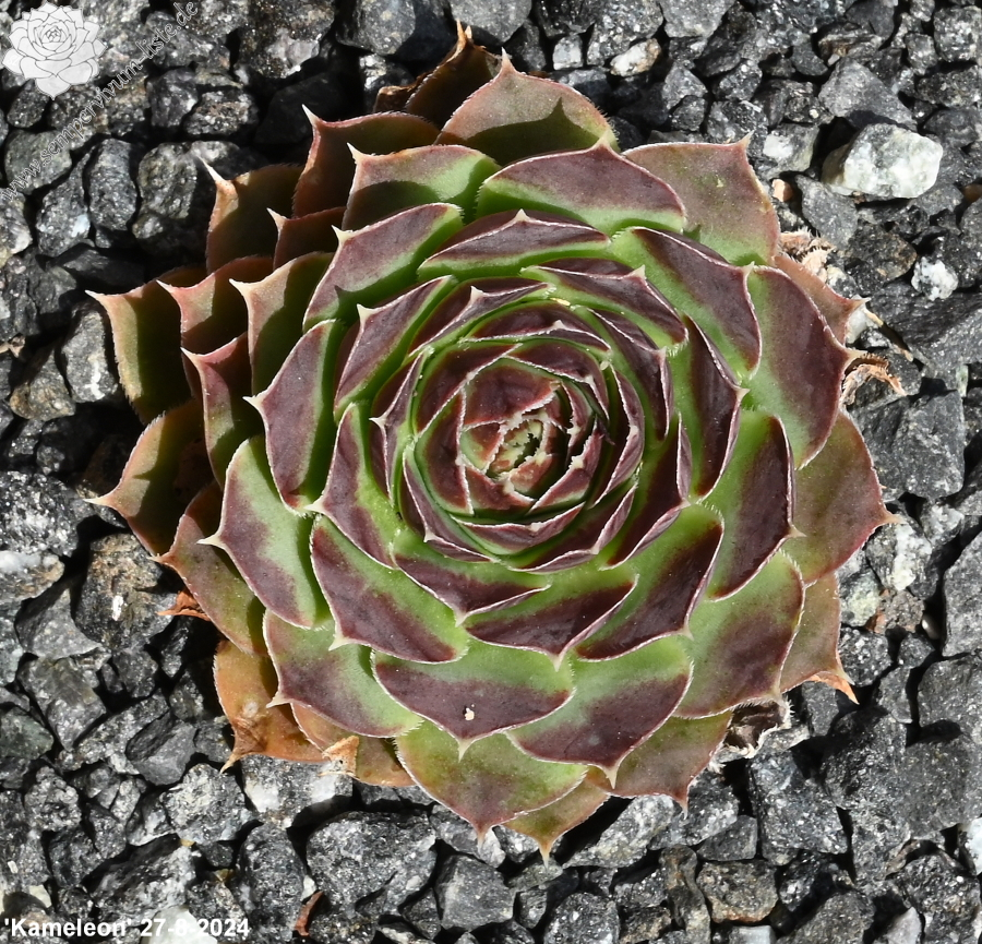 Rosetten bis 6 cm, Blätter oval, kurz bespitzt, Mischfarben grün - gelb - altrosa